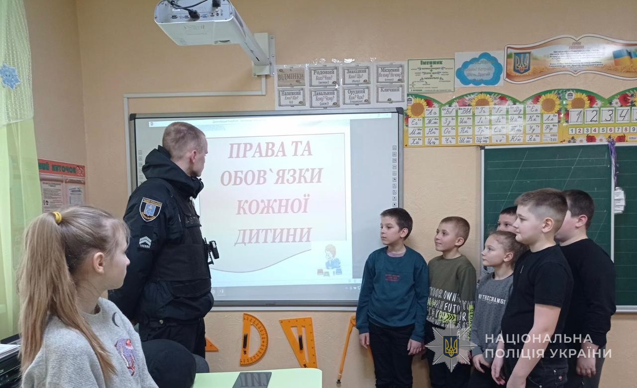 На початку зустрічі поліцейський продемонстрував дітям повчальний відео-ролик. Під час перегляду правоохоронець пояснив, які саме права гарантуються кожній людині та як їх можна захистити у випадку порушення. Також шкільний офіцер поліції розповів, що кожен має право на освіту, на особисту безпеку, на родину, на медичну допомогу, на саморозвиток, на харчування та на відпочинок.
