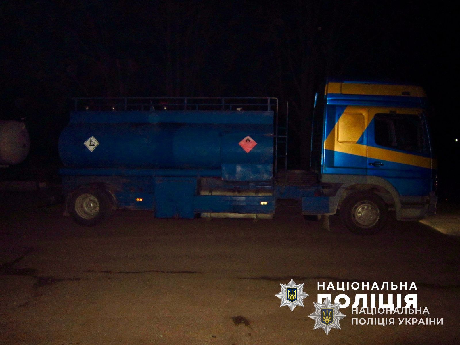 За результатами проведених слідчих (розшукових) дій у четвер, 27 березня 2025 року, вилучено автомобіль з цистерною, дві ємності з розподільними механізмами (колонками), а також 21,2 м³ пального.