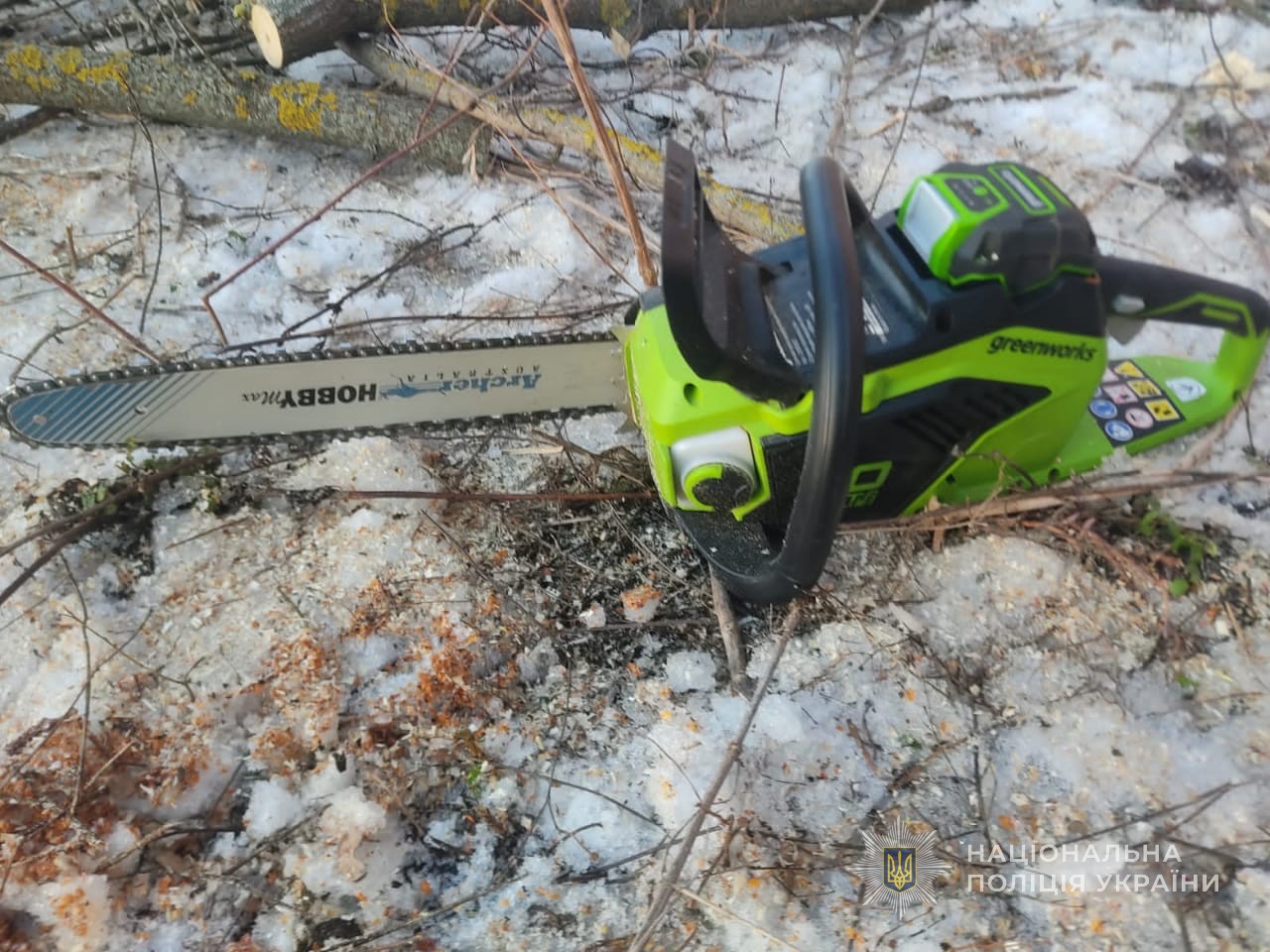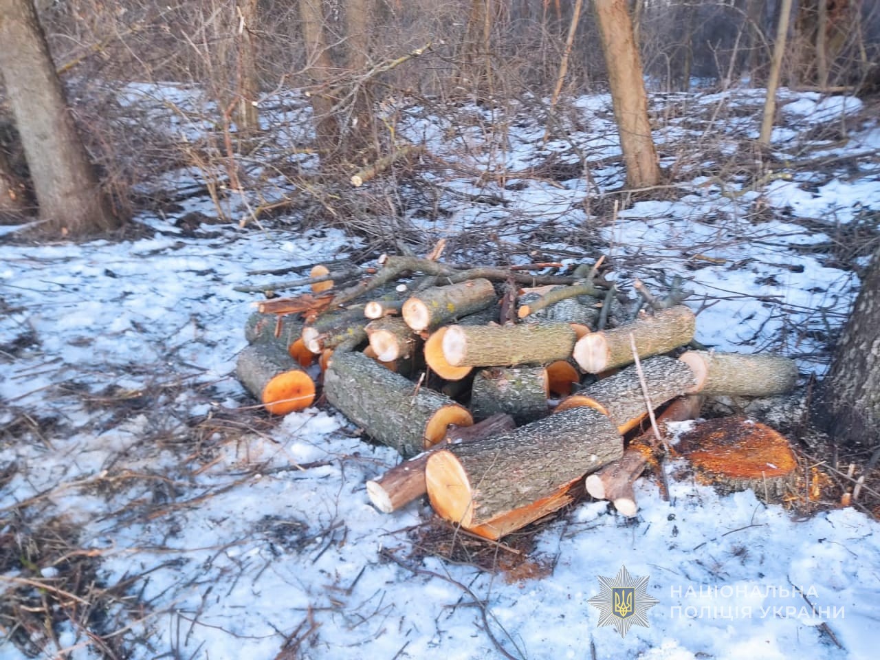 Під час першочергових слідчих дій поліцейські встановили, що зловмисник встиг спиляти 21 дерево породи клену, вільхи та бересту. Правоохоронці вилучили з місця злочину колоди дерев та бензопилу.