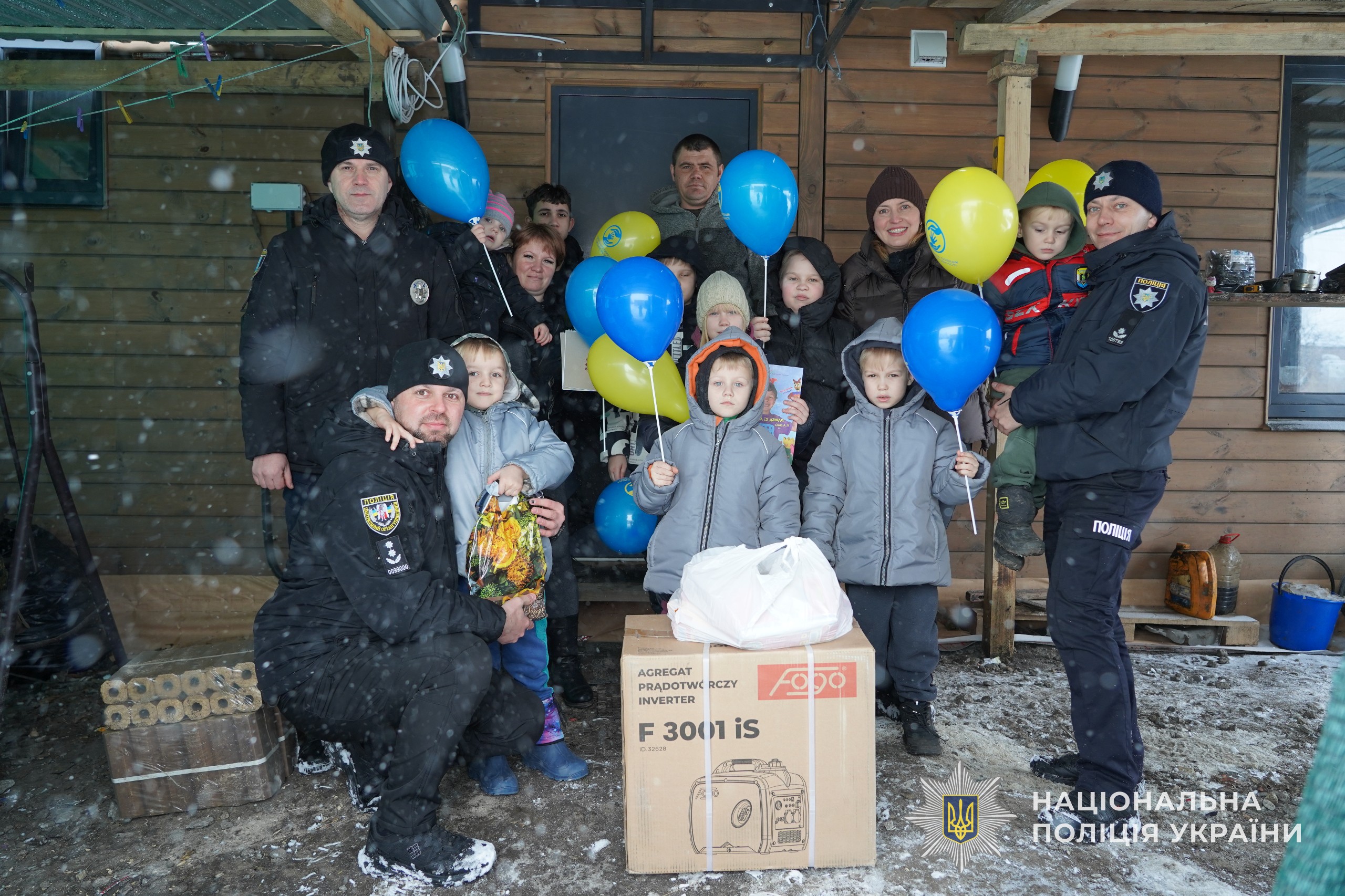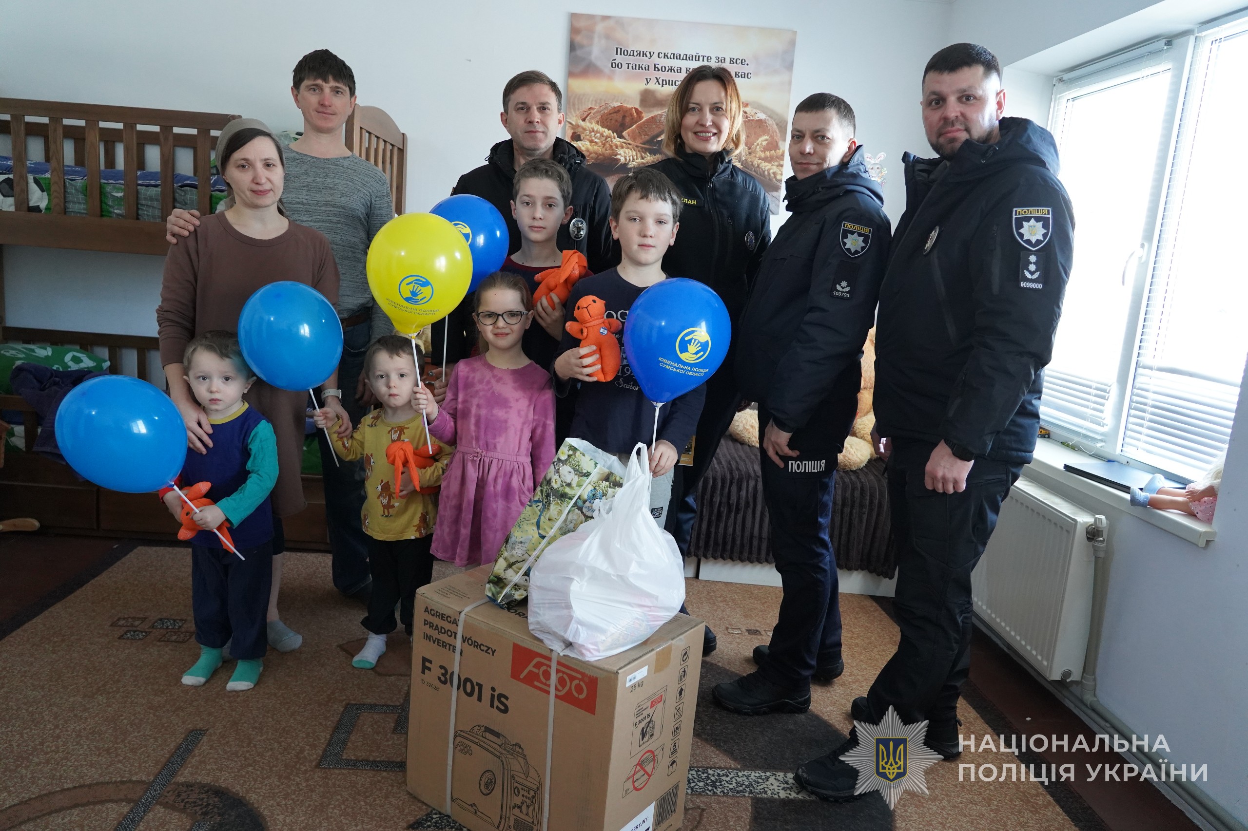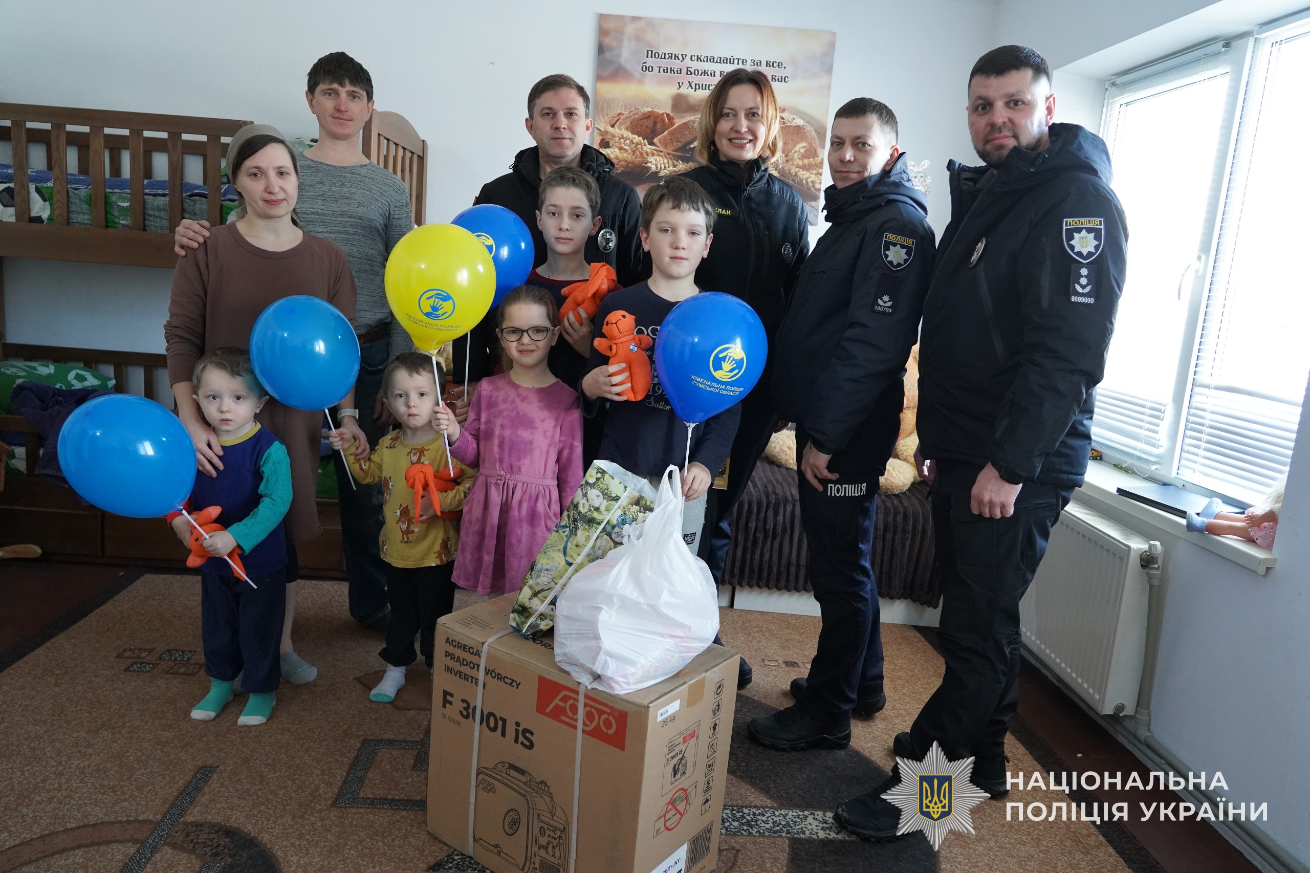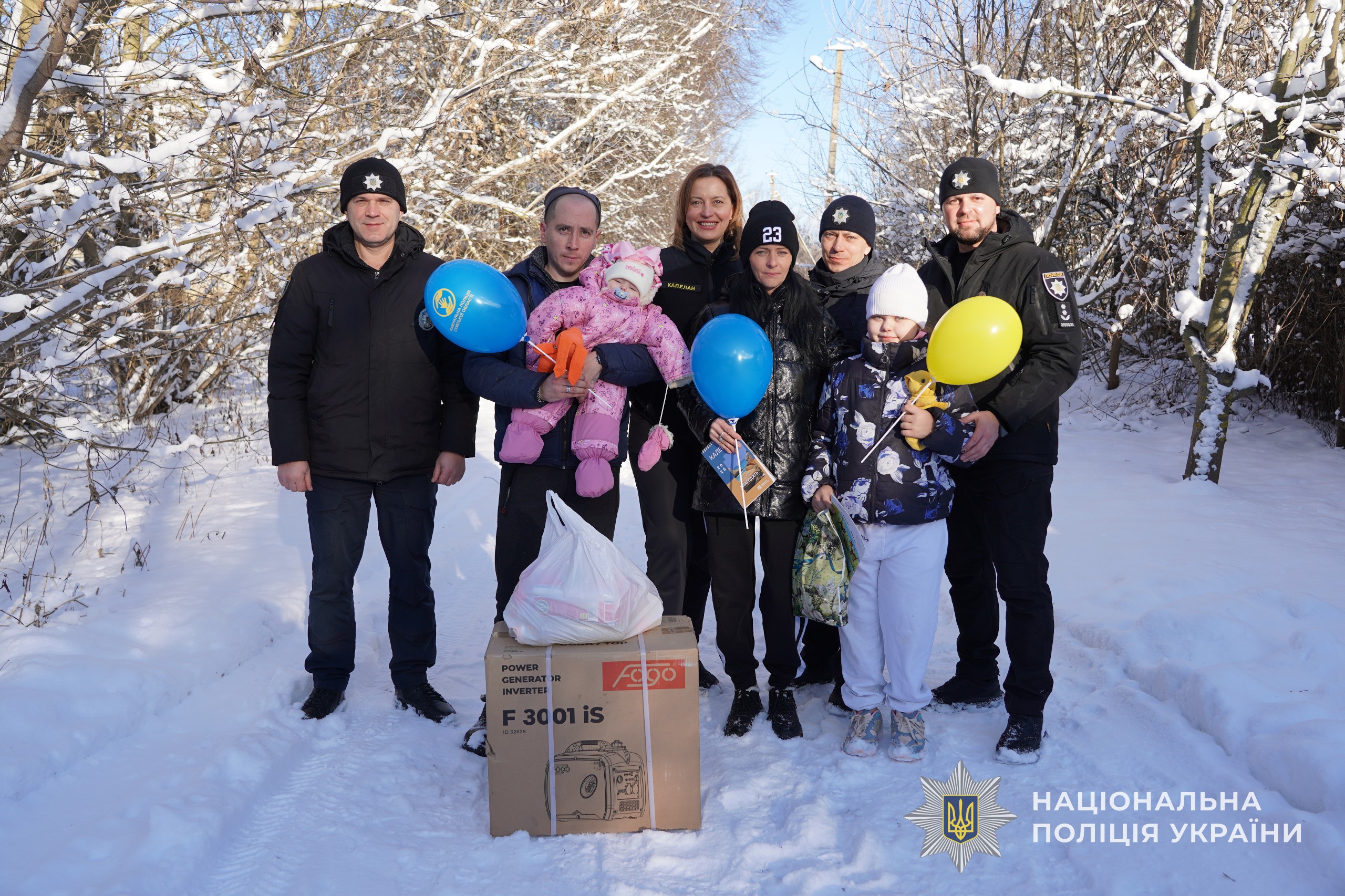У передноворічні дні представник Департаменту головної інспекції та дотримання прав людини Національної поліції України разом із ювенальними поліцейськими та капеланами долучилися до волонтерської ініціативи. Генератори передали багатодітним родинам Сумського району, які виховують дітей і потребують додаткової підтримки в зимовий період.