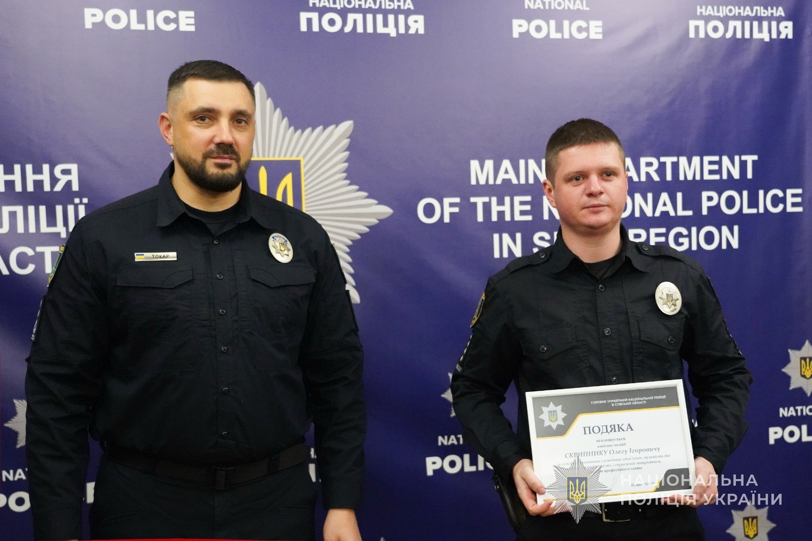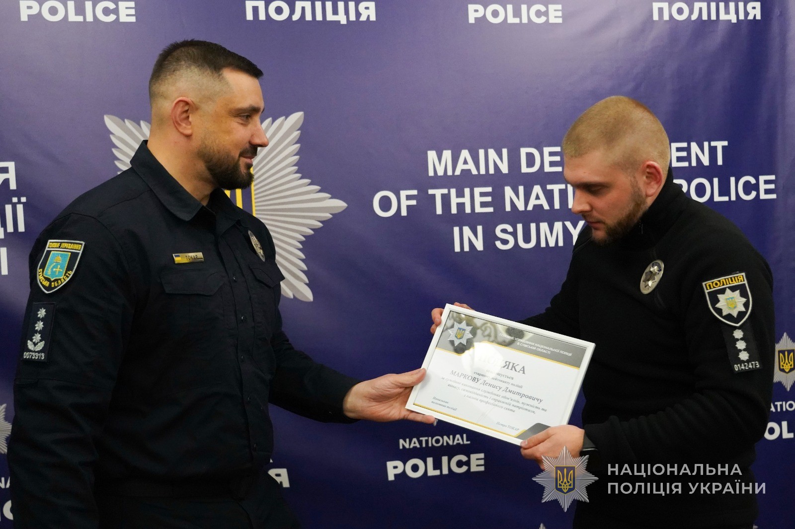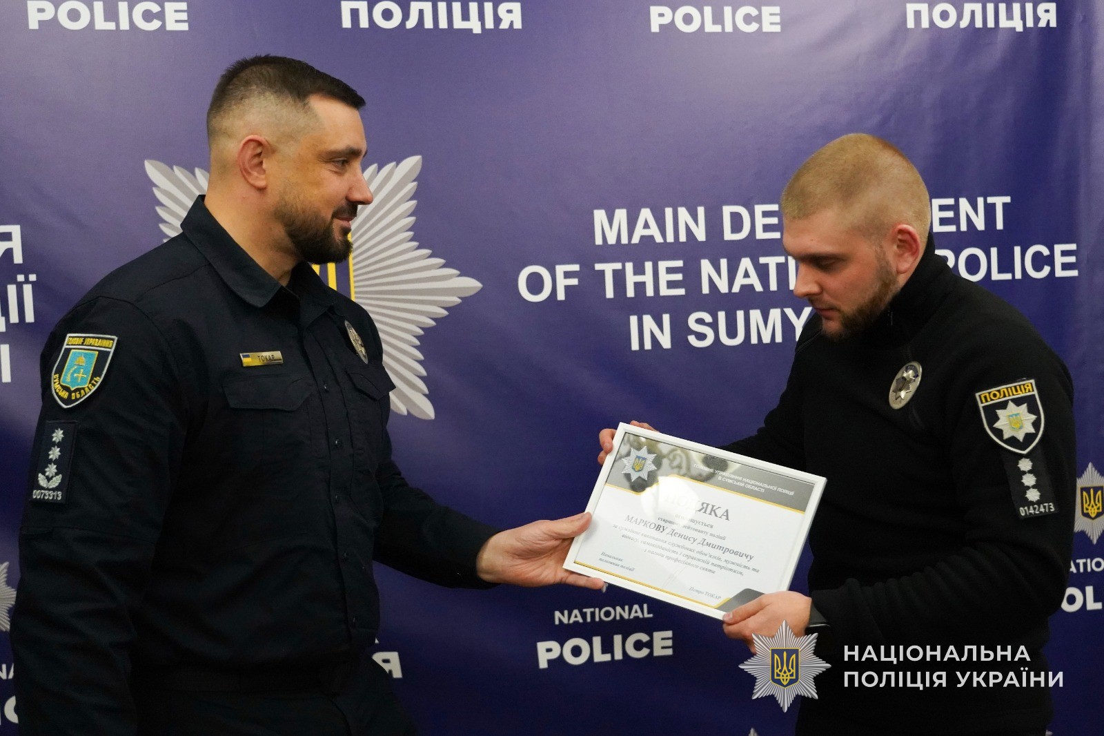 З нагоди п’ятої річниці запровадження інституту кримінальних проступків та створення підрозділів дізнання Національної поліції України, начальник Головного управління Національної поліції в Сумській області Петро Токар нагородив подяками та цінними подарунками кращих працівників підрозділів дізнання.