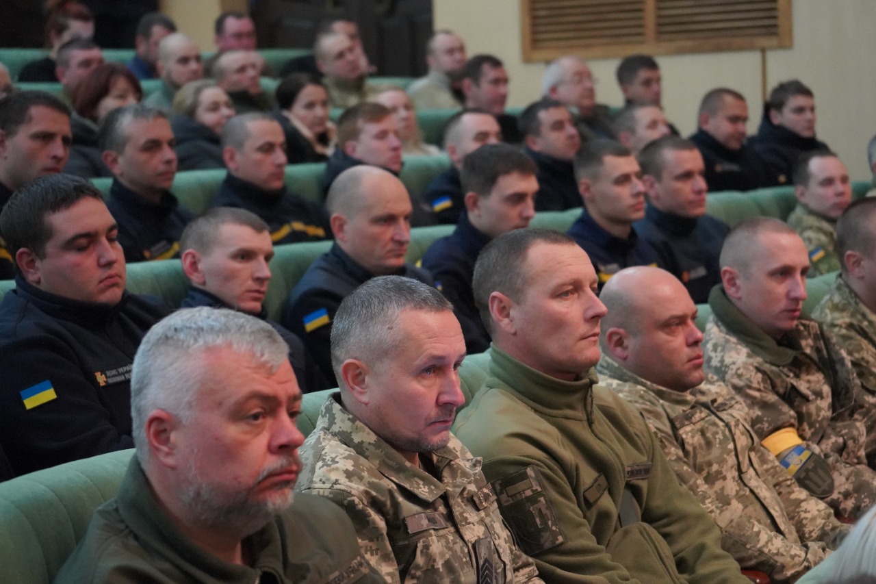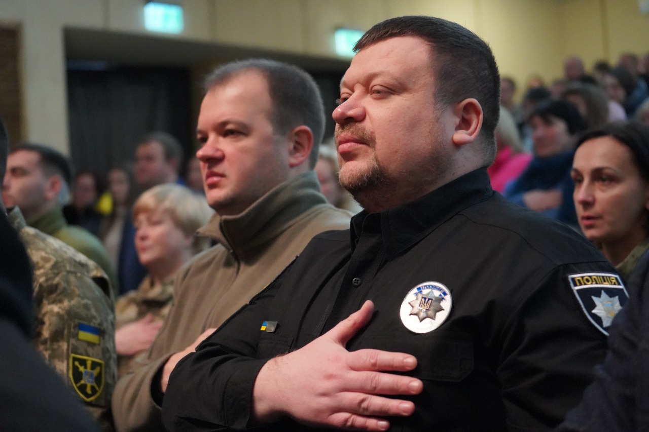 Урочисті заходи розпочались із державного гімну України, після чого до слова був запрошений Голова Сумської обласної військової адміністрації Дмитро Живицький. Він подякував усім службовцям та волонтерам за те, що кожного дня своїми зусиллями наближають нас до перемоги.