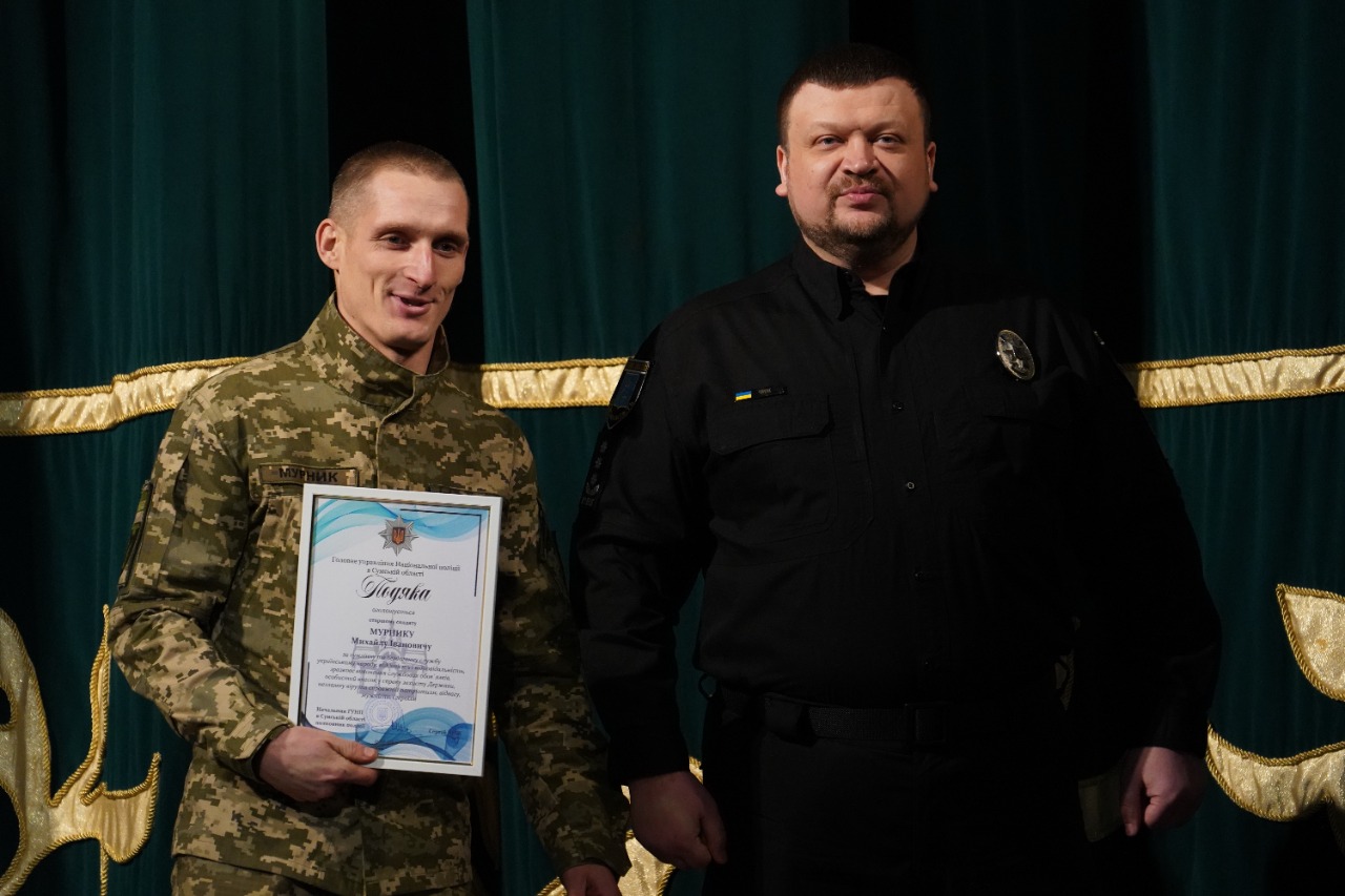 Очільник поліції Сумщини Сергій Чиж також висловив свої вітання волонтерам та представникам Збройних сил України. Крім того, за сумлінне несення служби та відданість українському народу вручив пам’ятні нагороди кращим із них.