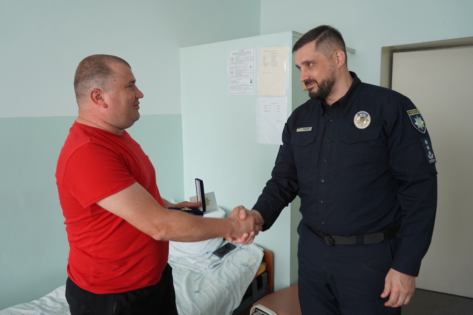 Від імені керівництва главку Сумської області та від себе особисто Петро Токар подякував поліцейському за віддану службу, мужність, побажав скорішого одужання та нагородив відомчою відзнакою.