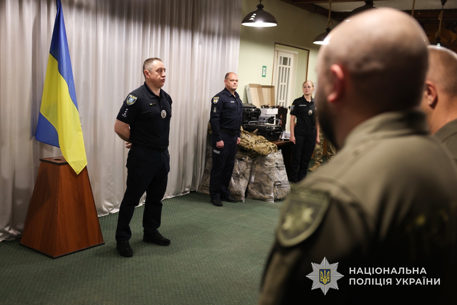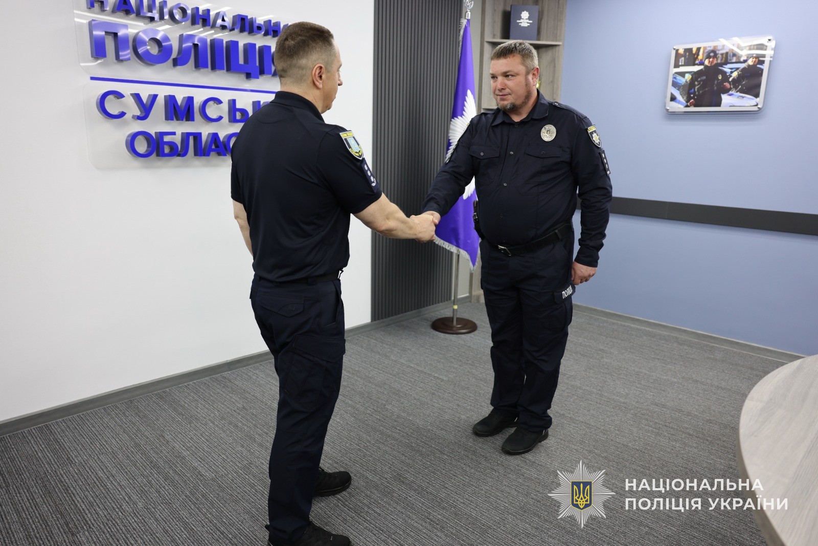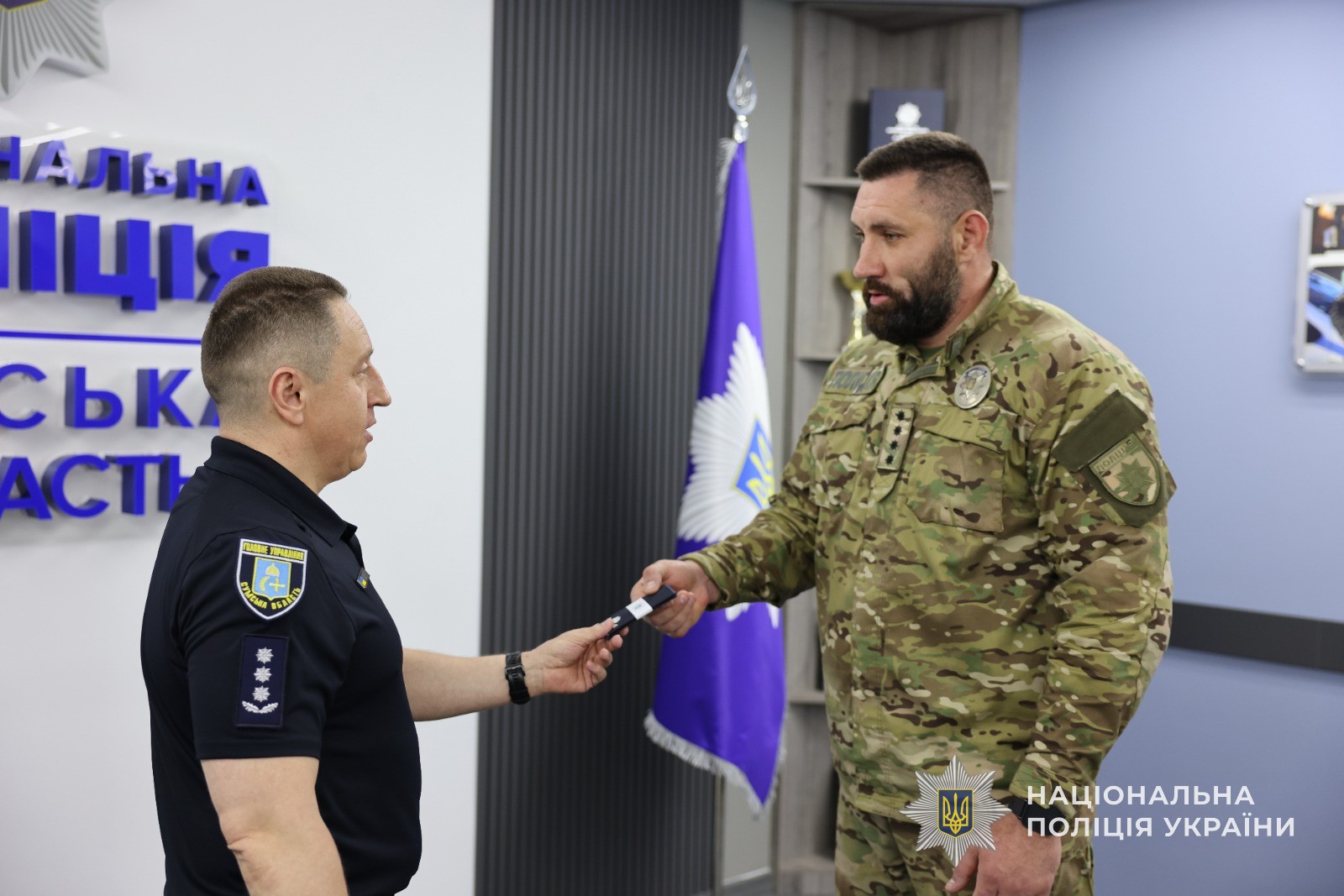 До вручення долучився й начальник Управління поліції охорони в Сумській області Олексій Дзюра. Він не лише підтримав колег, а й передав бійцям необхідні речі для виконання бойових завдань.