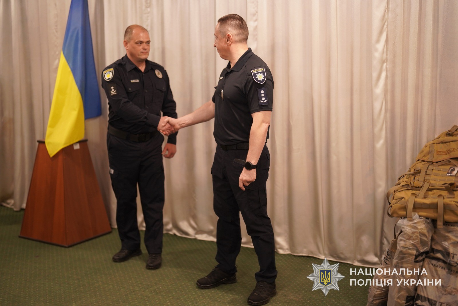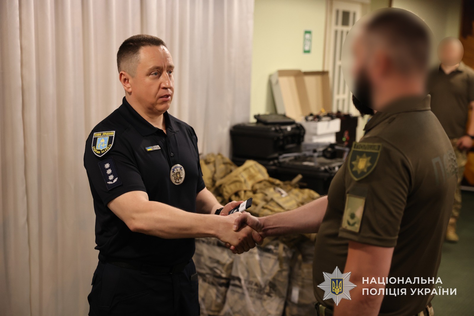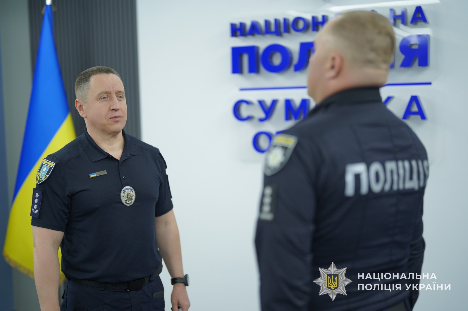 До вручення долучився й начальник Управління поліції охорони в Сумській області Олексій Дзюра. Він не лише підтримав колег, а й передав бійцям необхідні речі для виконання бойових завдань.