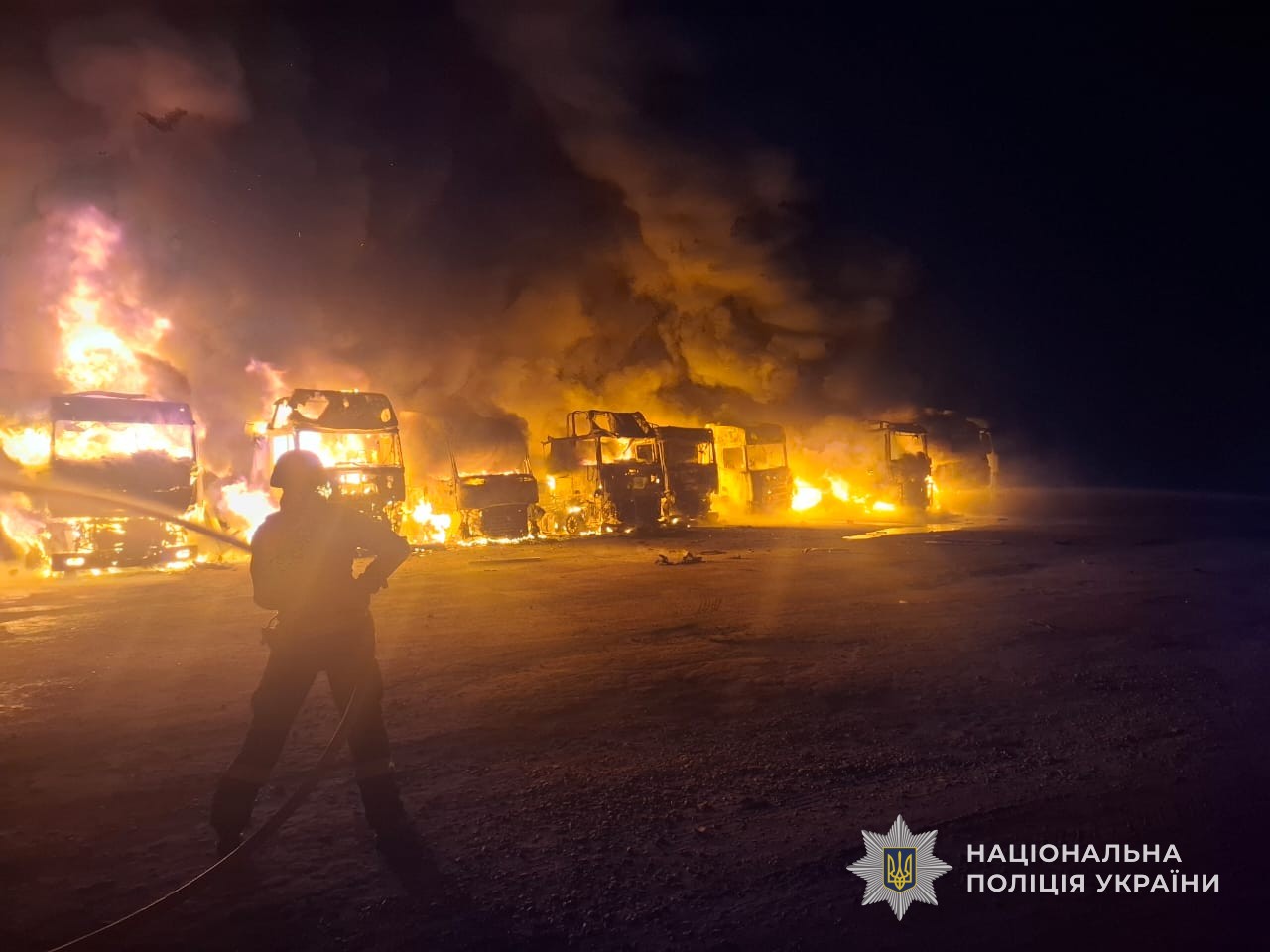 Окрім цього, сьогодні вночі ворог завдав удару по місту Суми за допомогою безпілотника. Внаслідок цього відбулось загоряння 7 приватних вантажних автомобілів. Наразі інформації про потерпілих не надходило.
