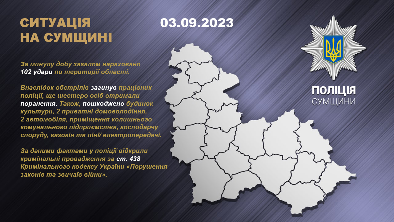 Минулої доби ворожі війська відкривали вогонь по 16 населеним пунктам області. Загалом нараховано 102 удари.