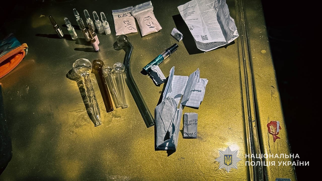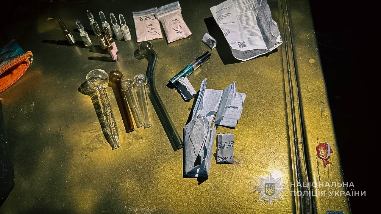 Надалі, в ході проведення обшуку за місцем мешкання зловмисника, правоохоронці вилучили пристрої для вживання психотропних речовин, зіп-пакети з кристалічною та порошкоподібною речовинами, схожими на PVP-сіль та паперові згортки з речовиною рослинного походження. Згідно висновків експертизи вилучене відноситься до особливо-небезпечних наркотичних речовин.