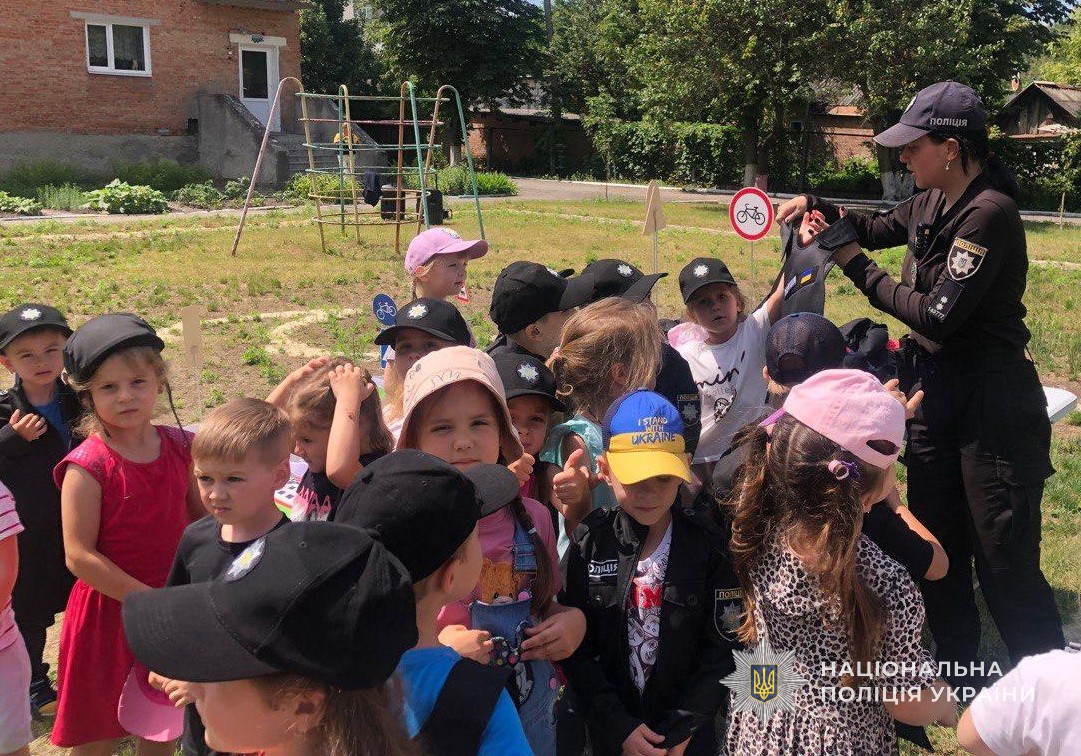Під час бесіди поліцейська розповіла дітям в ігровій формі про безпеку на дорозі, зокрема значення світлових сигналів світлофора, особливості переходу дороги в різних місцях, значення дорожніх знаків.