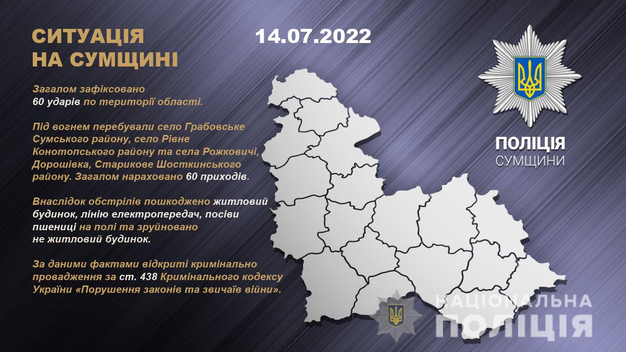 За даними фактами відкриті кримінально провадження за ст. 438 Кримінального кодексу України «Порушення законів та звичаїв війни». Поліція документує наслідки обстрілів.