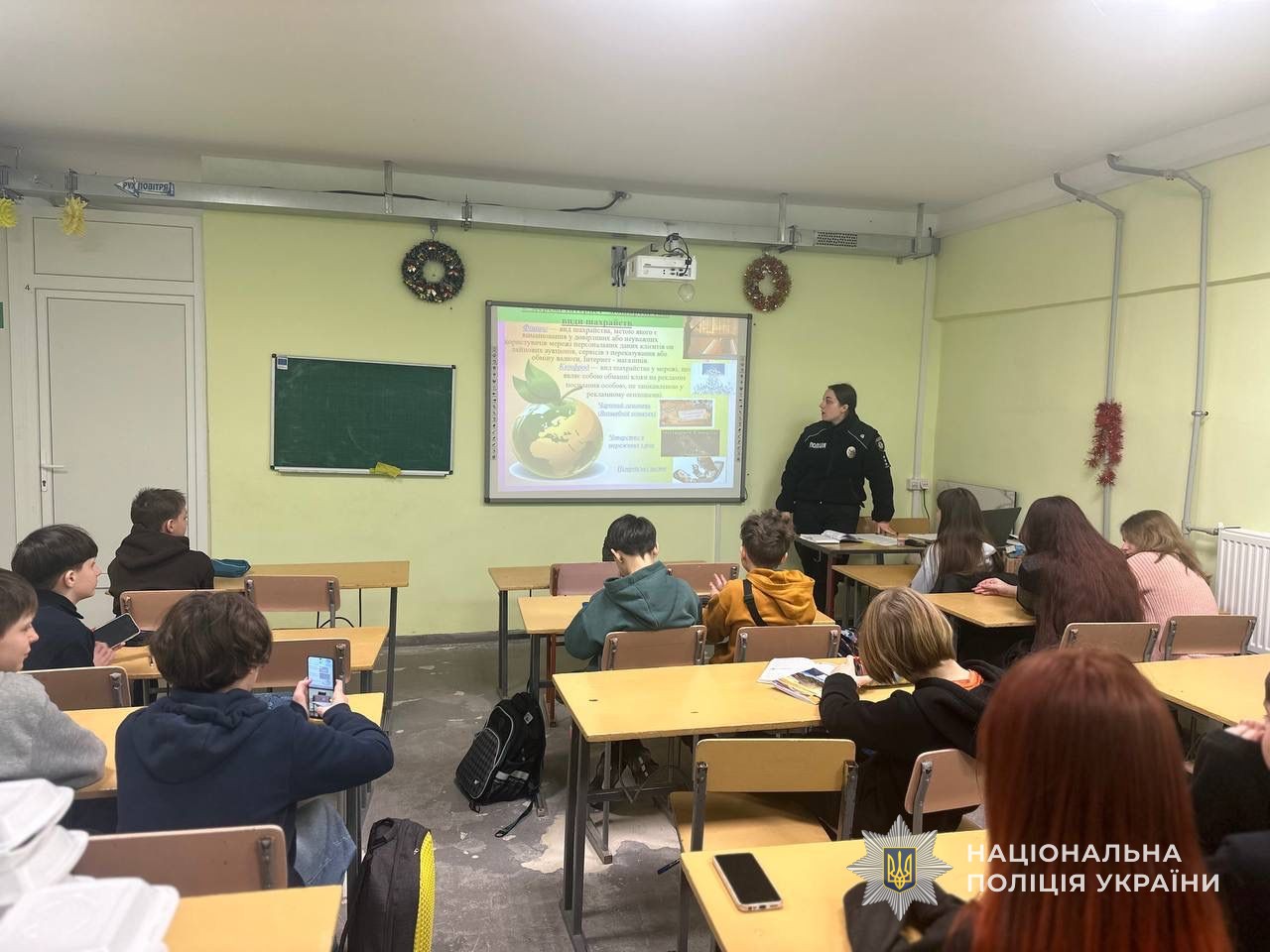 Поліцейські провели для учнів місцевої школи інтерактивне заняття про шахрайство — без складних термінів, зате з реальними прикладами та ситуаціями, з якими діти можуть зіткнутися щодня.
