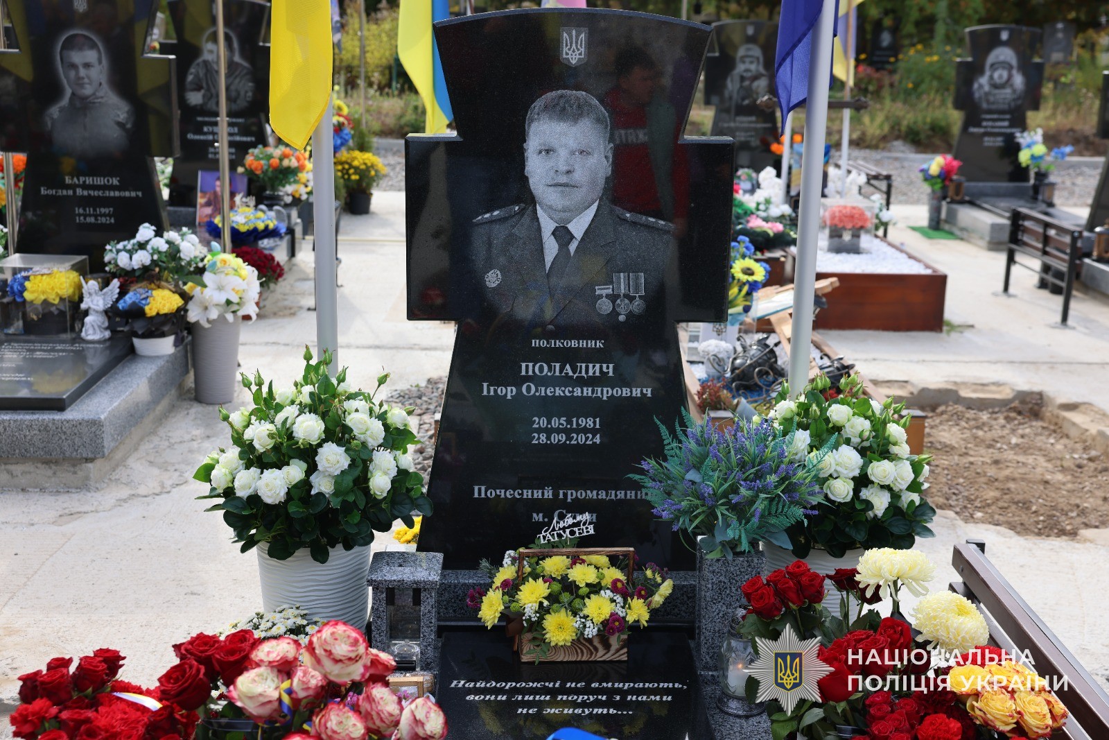Рік тому, 28 вересня 2024 року, ворожий удар безпілотниками по місту Суми забрав життя тодішнього начальника сектору кадрового забезпечення Сумського районного управління поліції ГУНП в Сумській області Ігоря Поладича. Він одним з перших прибув до місця обстрілу та разом з колегами проводив евакуацію місцевих мешканців із зони небезпеки. Під час рятувальної операції та ліквідації наслідків авіаудару стався повторний обстріл того місця, де в цей час працювали представники оперативних служб. Полковник поліції Ігор Поладич дістав смертельне поранення та загинув на місці. Ще один поліцейський тоді був тяжко поранений.