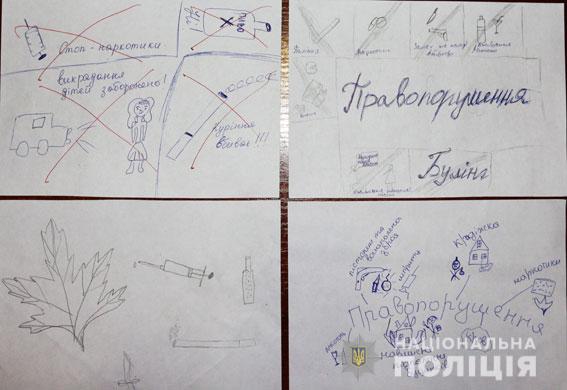 Цього разу Віта Гаценко, інспектор ювенальної превенції Сумського райвідділу поліції, та Богдан Лавошнік, провідний спеціаліст служби у справах дітей Сумської РДА, організували для учнів середніх і старших класів Косівщинської та Великочернеччинаської шкіл «круглий стіл» на правову тематику. І запропонували учням самим визначити, що таке право, які права має людина, і які вони знають види правопорушень. Завʼязалось активне обговорення між учасниками зустрічі - з чого ж «починається» правопорушення, і які обставини штовхають людину на конфлікт з законом. Тоді інспектор порадила: якщо ви хочете зрозуміти суть цього явища, намалюйте правопорушення так, як ви його самі бачите. І молоді люди у своїх нашвидкуруч зроблених малюнках самі чітко та образно показали, з чого насправді починається «слизька стежина».