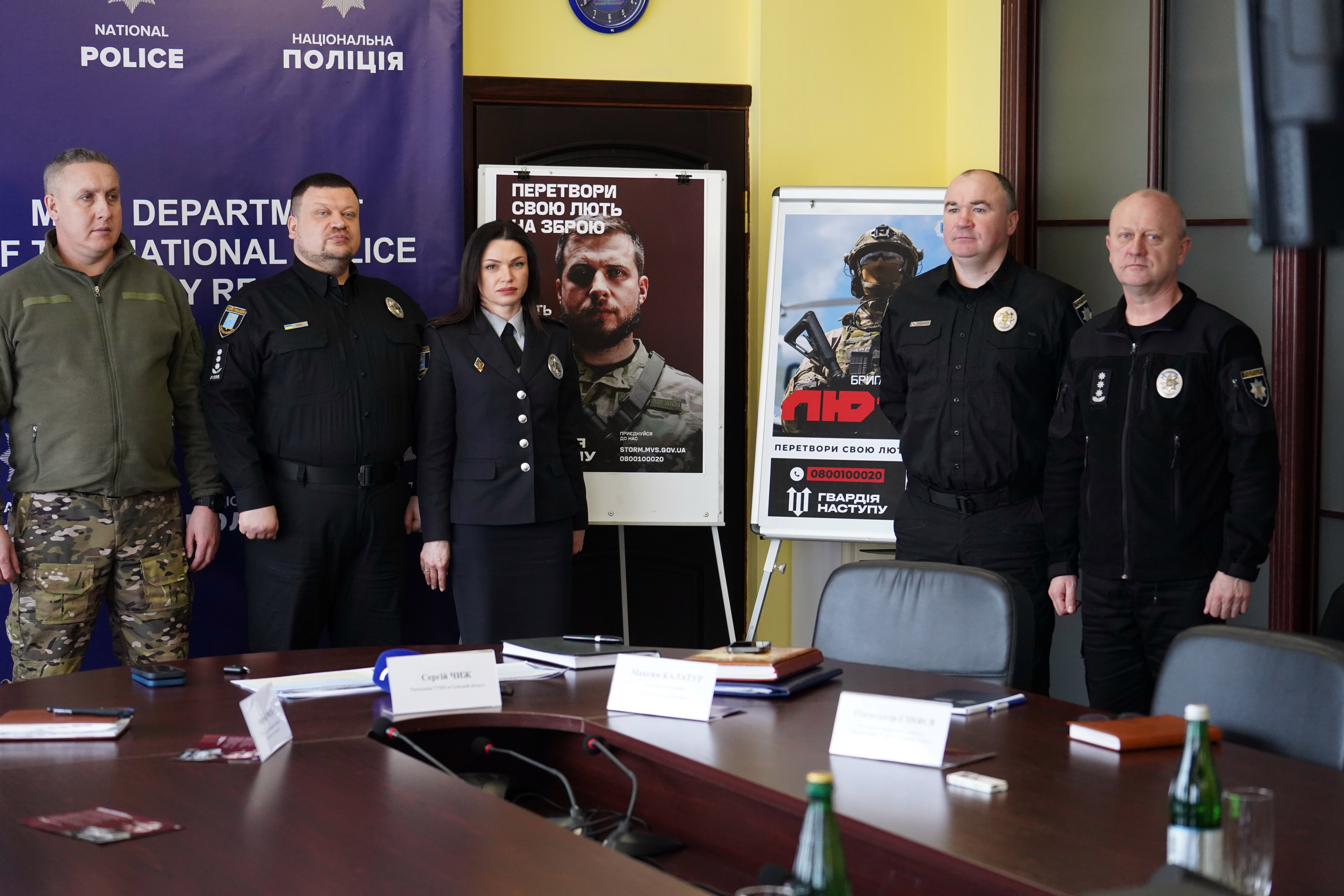 Під час брифінгу з журналістами очільник Головного управління Національної поліції в Сумській області Сергій Чиж, його заступник Максим Калатур, начальник управління кадрового забезпечення Олександр Сіняєв та заступник командира батальйону «Луганськ-1» Андрій Місюк розповіли про загальну концепцію, мету, завдання і набір до об’єднаної штурмової бригади «Лють».