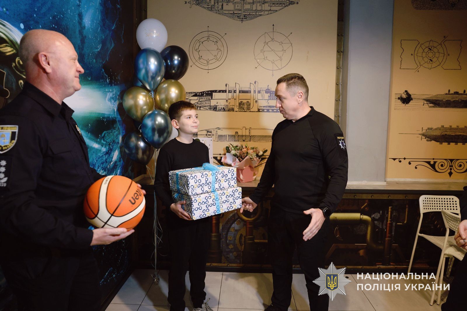 Начальник ГУНП в Сумській області Олег Кашперук разом з представниками кадрового забезпечення ГУНП, які піклуються про соціально-психологічний супровід родин постраждалих, зробили особливим день народження Дениса, сина загиблого поліцейського Ігоря Поладича.