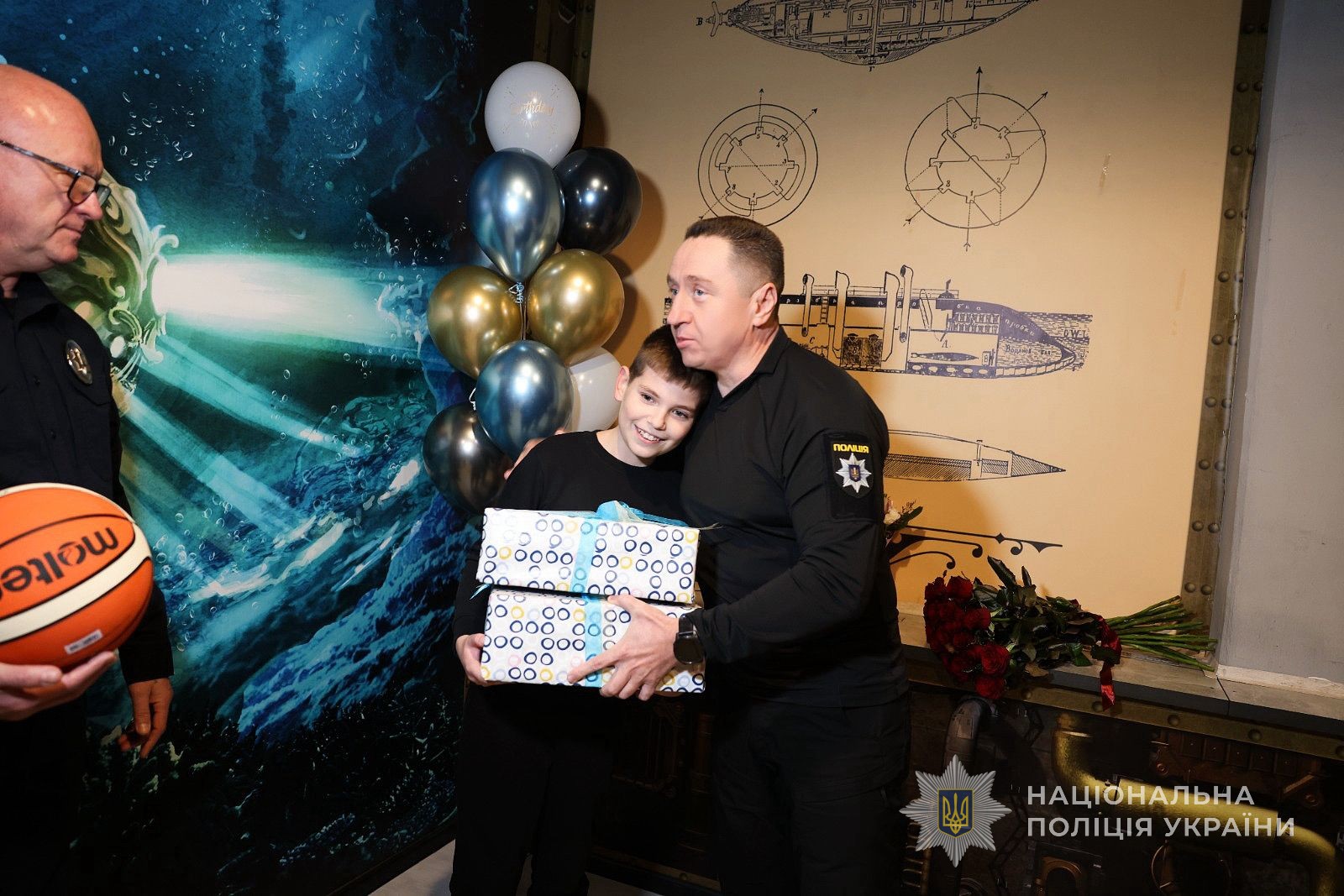 Денис щиро зрадів несподіваному візиту поліцейських. Начальник ГУНП Олег Кашперук особисто привітав хлопчика з одинадцятиріччям. Окрім того, керівник подякував дружині загиблого, Оксані, за її силу, витримку та гідне виховання дітей.