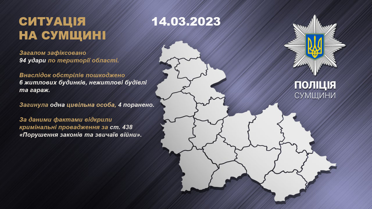 Протягом минулої доби війська рф здійснили 94 удари по прикордонних населених пунктах області.