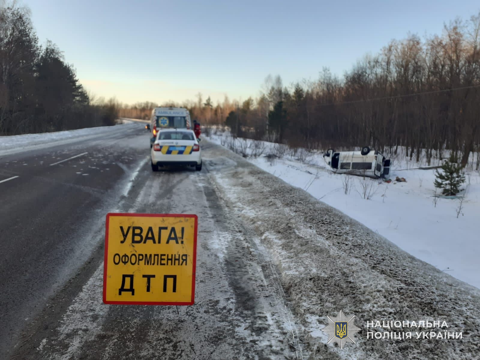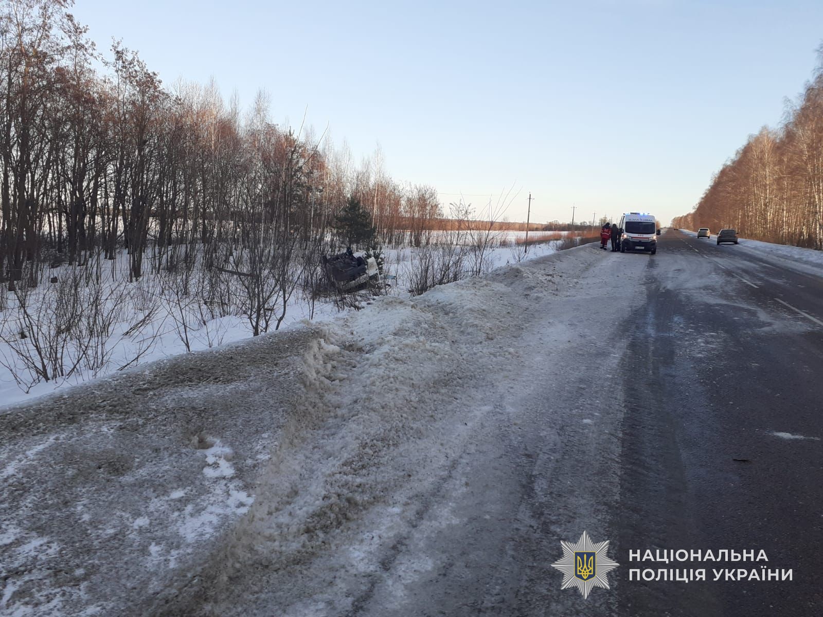Як попередньо встановили правоохоронці, 66-річний водій автомобіля «Mercedes Sprinter» не впорався з керуванням та допустив зʼїзд у кювет з подальшим перекиданням. Внаслідок чого керманич та 23-річний пасажир отримали тілесні ушкодження та були госпіталізовані до лікарні. Авто зазнало механічних пошкоджень.