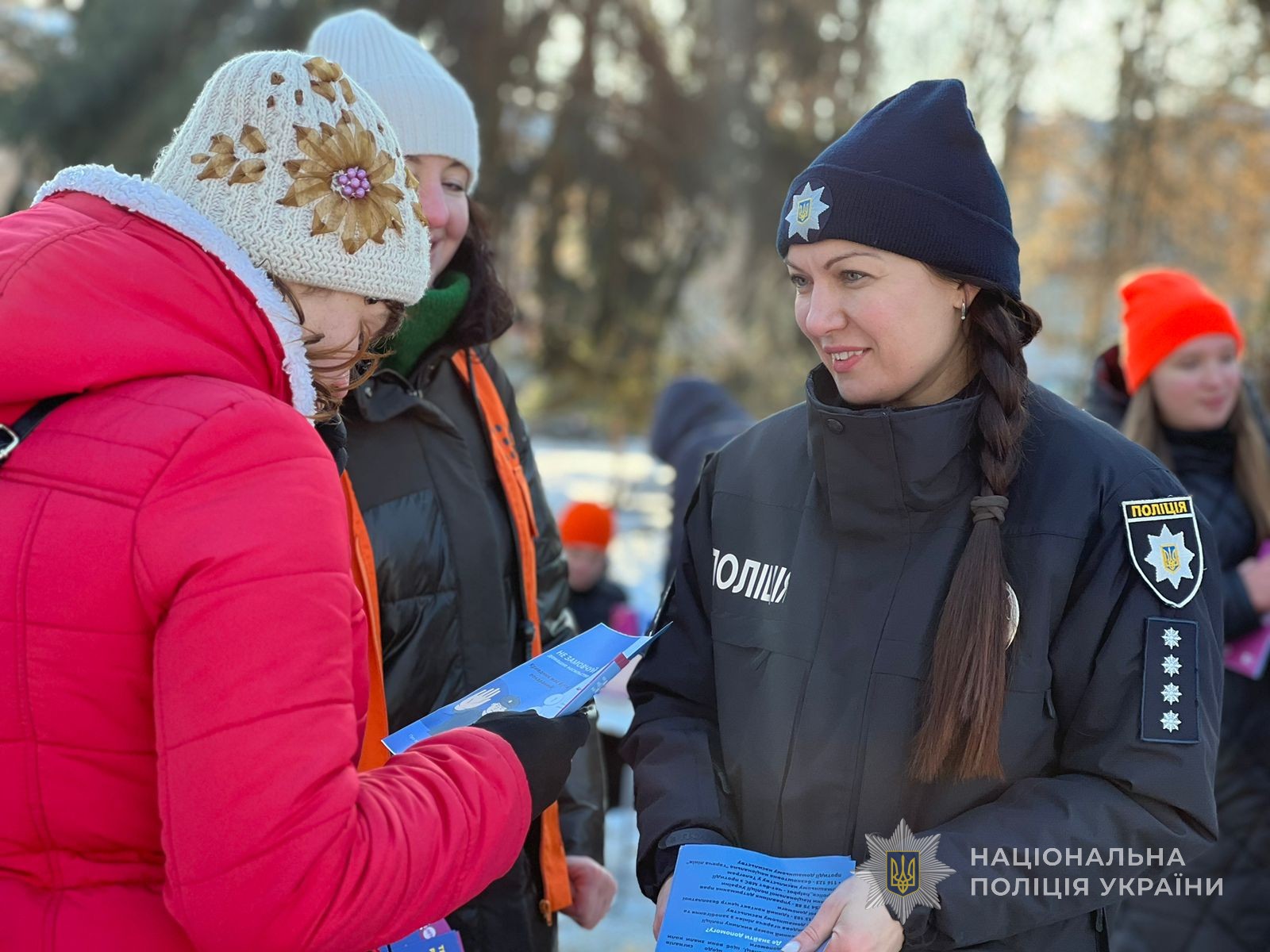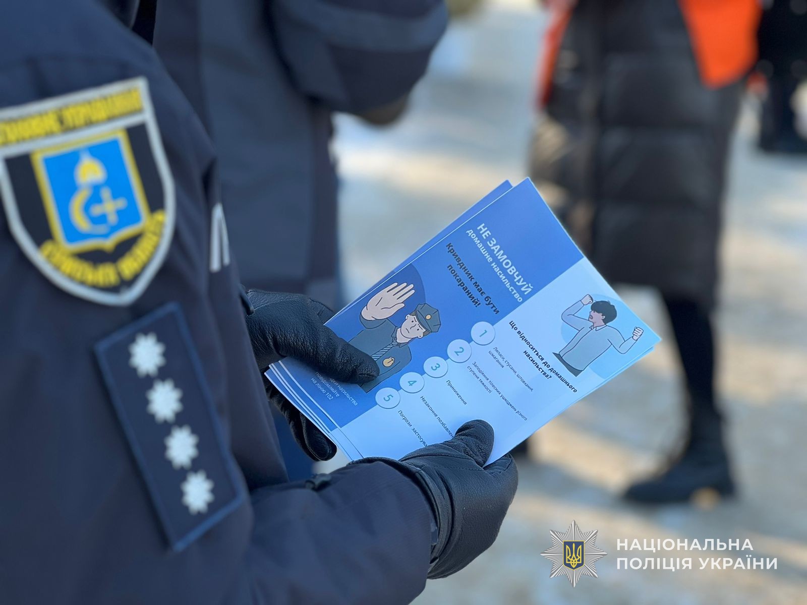 Акція пройшла в самому центрі міста на площі Миру. Правоохоронці говорили з громадянами про важливість підняття такої теми як насильство в сім‘ї. Розказали які є види домашнього насильства та яким чином воно проявляється. Роз’яснили, яка відповідальність передбачена за вчинення протиправних діянь такого характеру. Також, роздали перехожим тематичні буклети, в яких зазначені телефони за якими можна звернутись по допомогу.