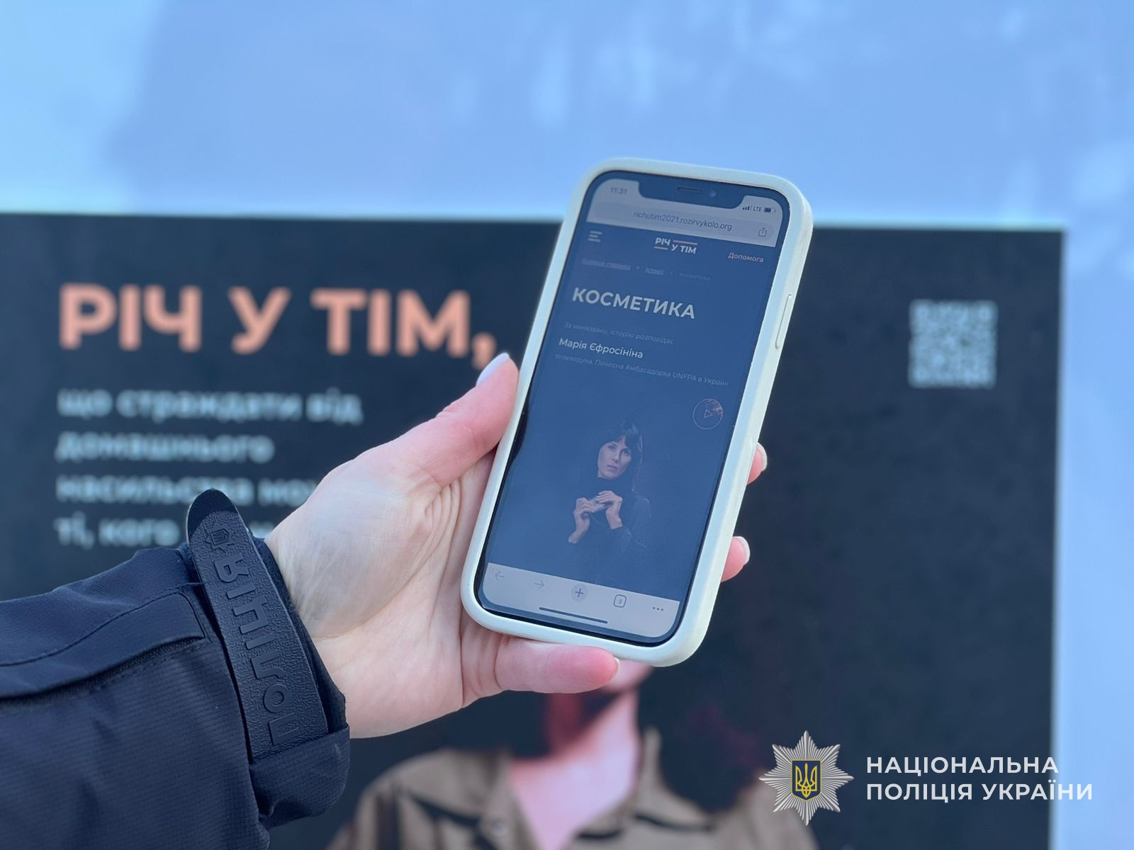 Окрім того, поліцейські презентували соціальний проєкт - «Річ у тім 2.0», головною метою якого є привернення уваги суспільства до проблеми подолання насильства у сім’ї, жорстокого поводження з дітьми та протидії торгівлі людьми. Всі бажаючи могли просканувати QR-код, зображений на тематичних плакатах та переглянути відеоролики в яких висвітлено реальні історії життя, де мало місце домашнє насильство.