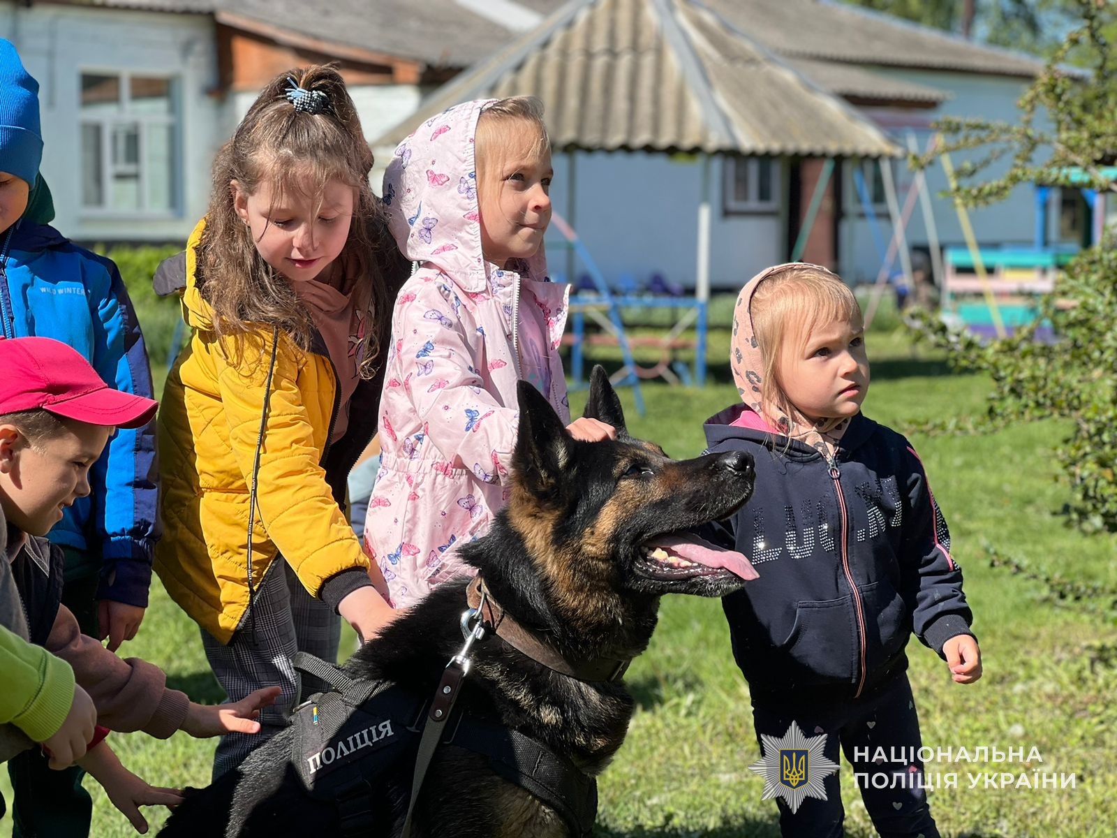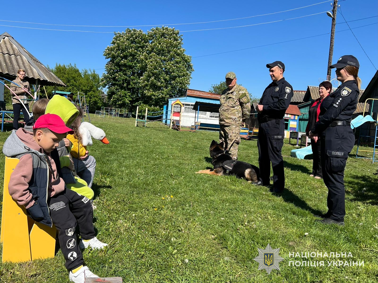 Інспектор з дотримання прав людини, інспектор-кінолог та начальник сектору взаємодії з громадами завітали до вихованців дошкільного навчального закладу «Сонечко» Попівської територіальної громади де провели пізнавальний заклад для дітлахів.