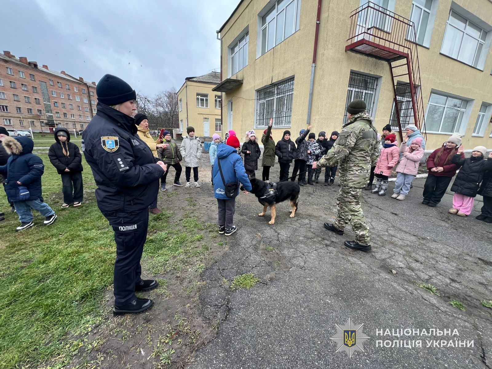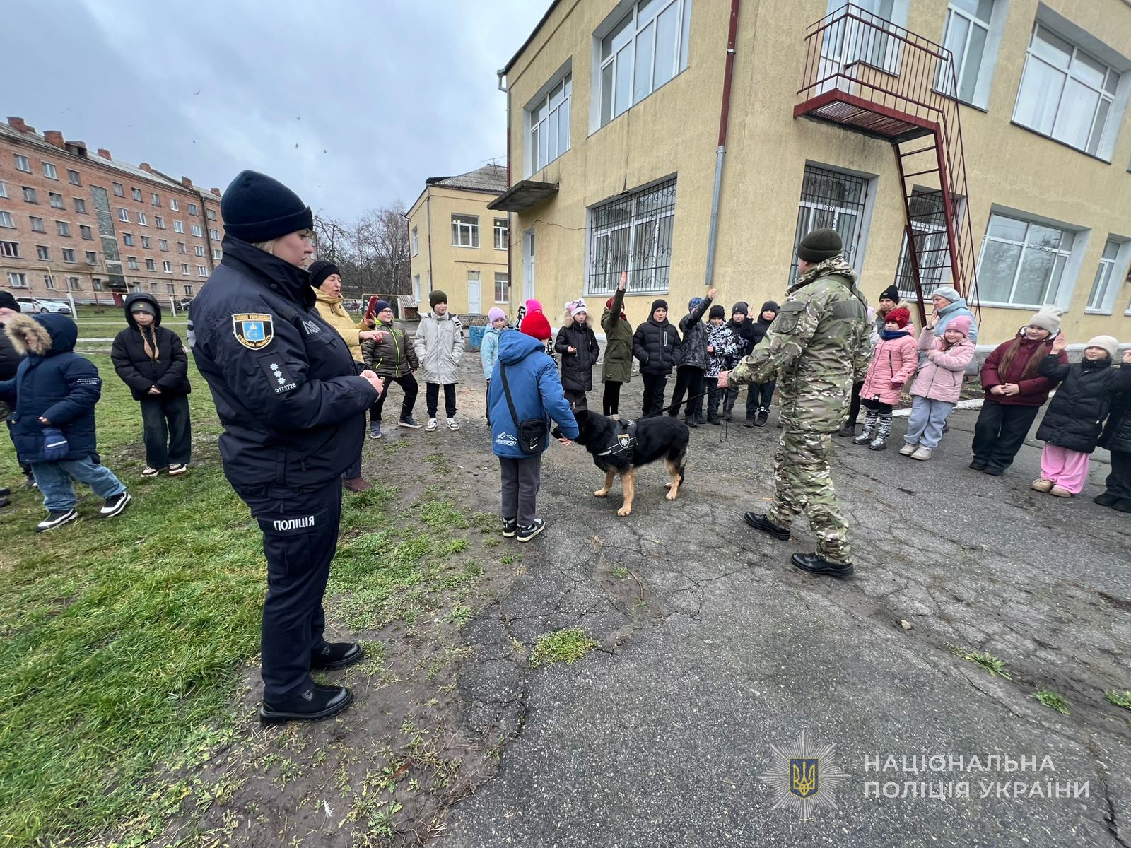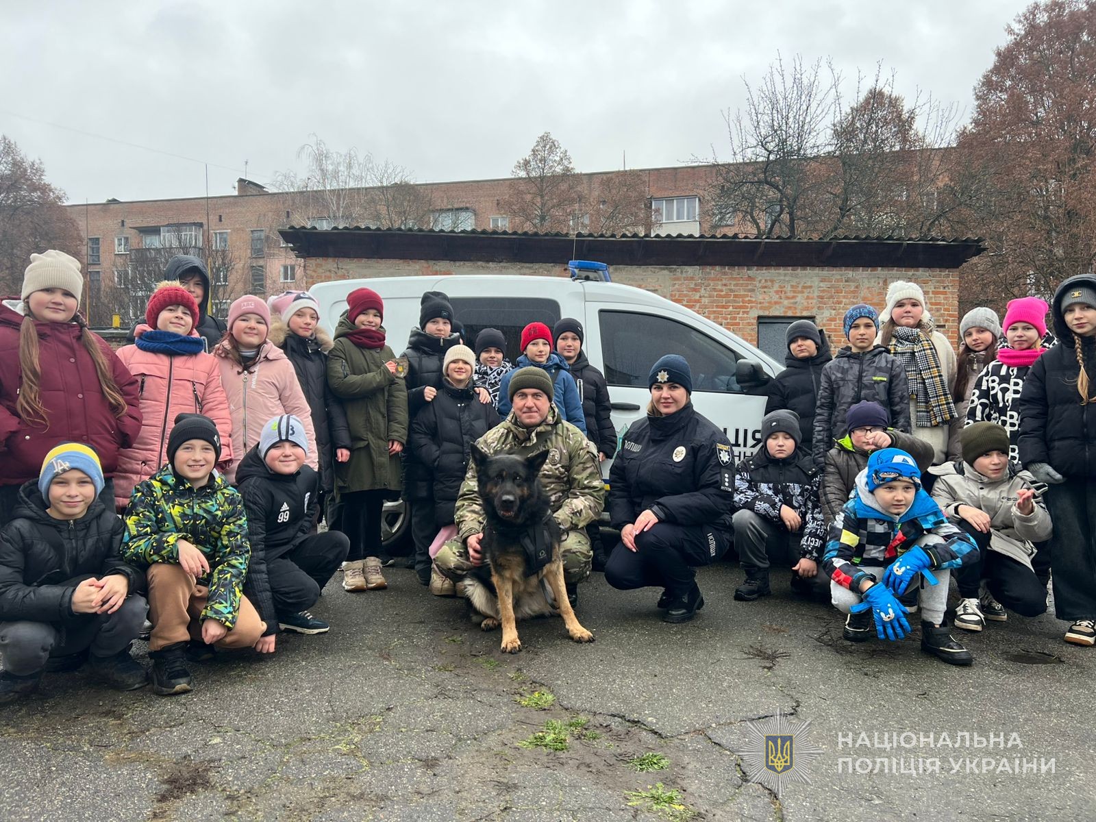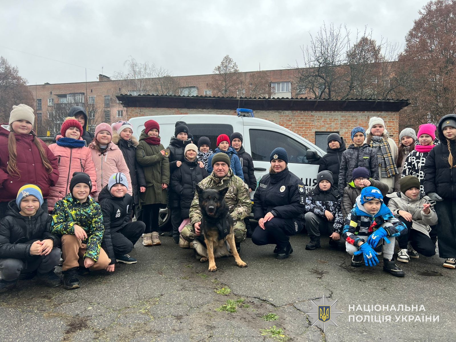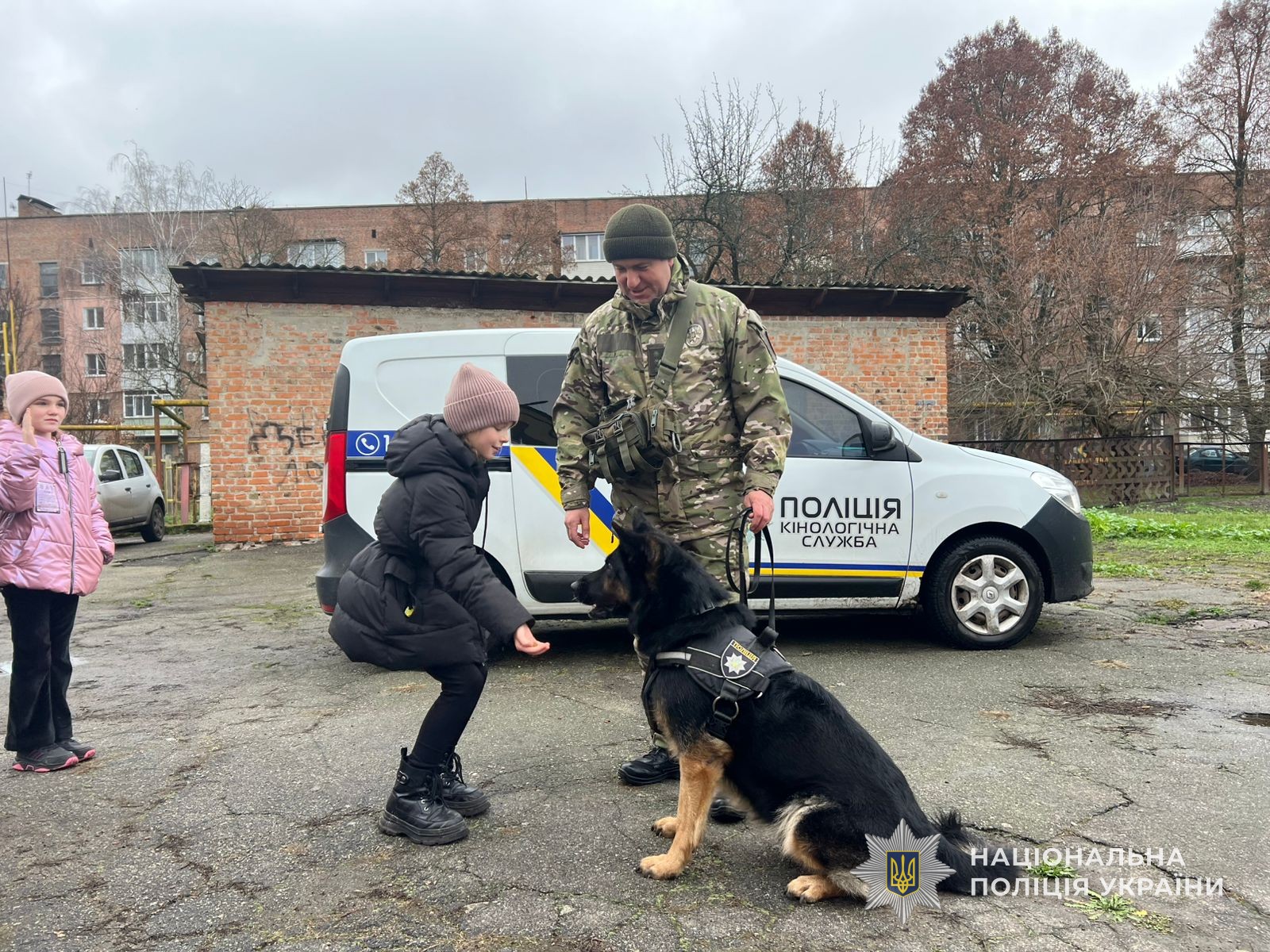 Під час зустрічі правоохоронці розповіли учням про специфіку своєї роботи, важливість дотримання прав людини та роль кінологічної служби у забезпеченні безпеки громадян.