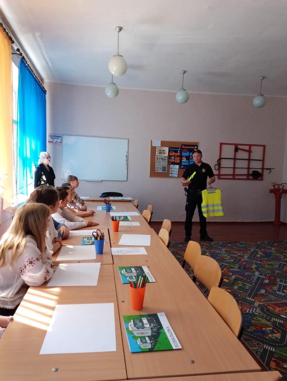 Інспектор ювенальної превенції розповіла дітям у Буринському ліцеї № 1 про те, які існують види транспорту, пішохідних переходів, правила переходу через дорогу на регульованих та нерегульованих ділянках дороги.