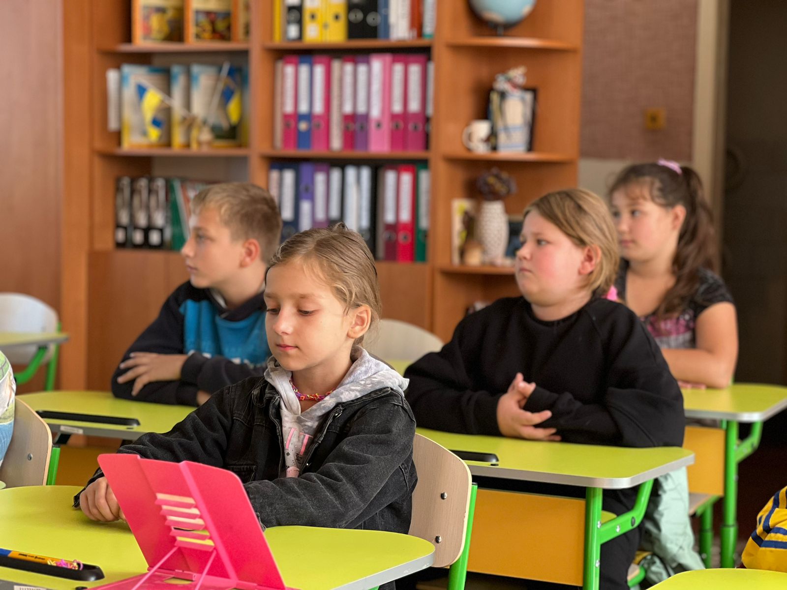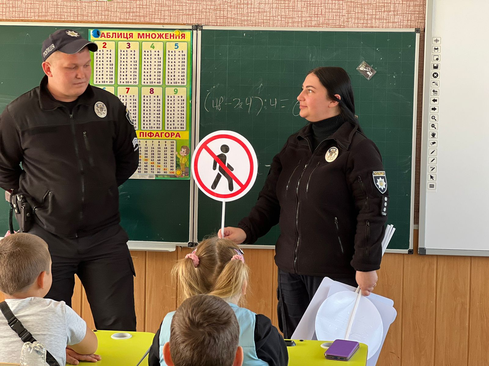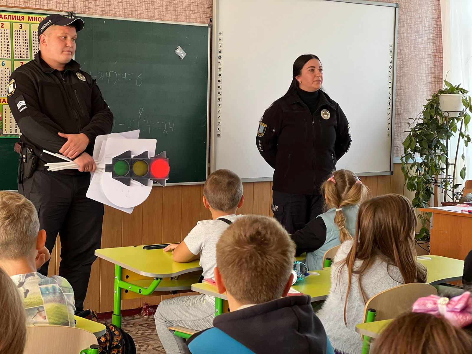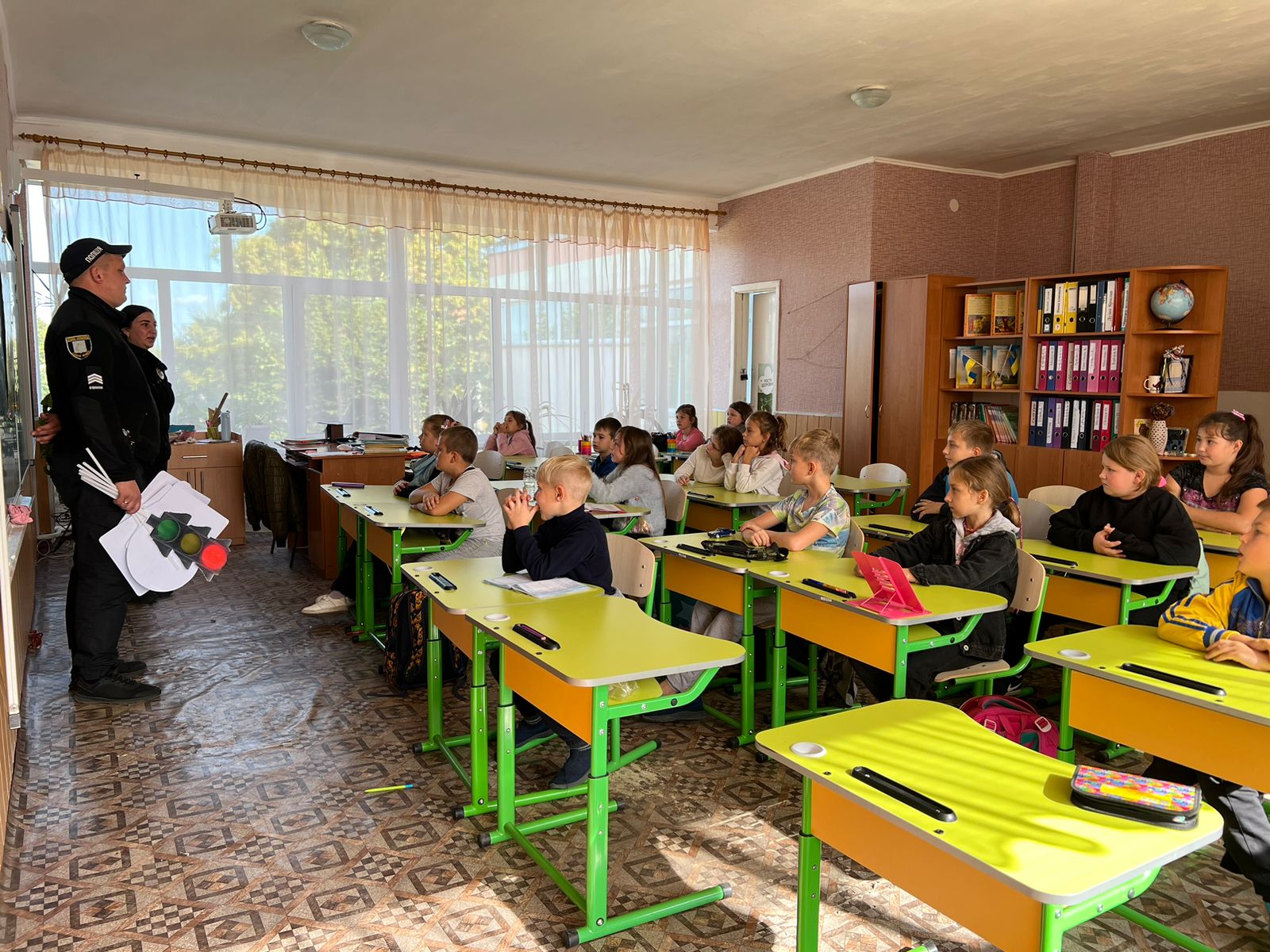 На початку уроку інспекторка розказала дітям про Державну українську символіку, її історію, походження та значення. Також, звернула увагу на повагу до таких символів і про те, яка відповідальність настає за їх псування чи нищення.