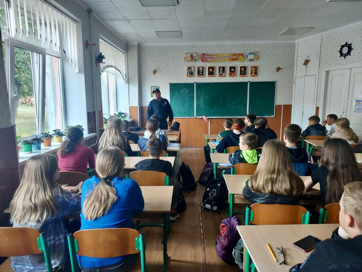 Поліцейській зустрівся з дітьми та розказав про правила безпеки, яких необхідно дотримуватись, аби навчання та дозвілля було безпечним. Дільничний офіцер поліції наголосив на недопущенні травмування гострими предметами, обережному поводженню з вогнем та електроприладами.