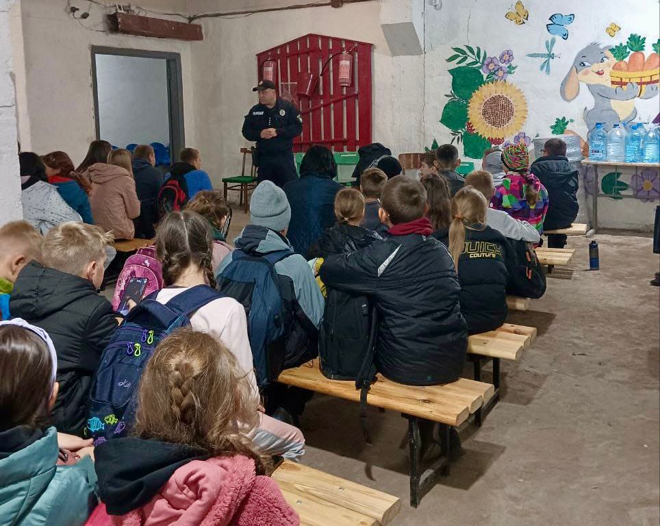 Дільничний офіцер поліції розказав учням про правила поводження при виявленні вибухонебезпечних предметів, про те, чому так важливо своєчасно реагувати на сигнали повітряної тривоги та переходити в укриття. Також поліцейський нагадав правила дорожнього руху, роз’яснив значення деяких дорожніх знаків та наголосив на необхідності носіння світловідбиваючих елементів у темну пору доби.