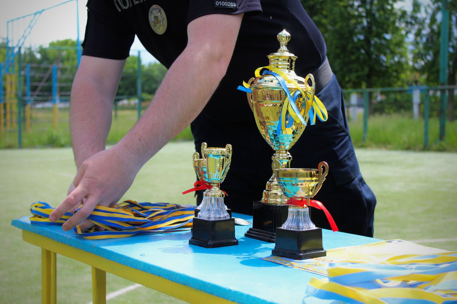 Поліцейські офіцери Шосткинської громади Максим Сидорченко, Артем Плющик та Андрій Шелудько з нагоди свого професійного свята започаткували турнір з міні-футболу серед школярів з перехідним кубком.