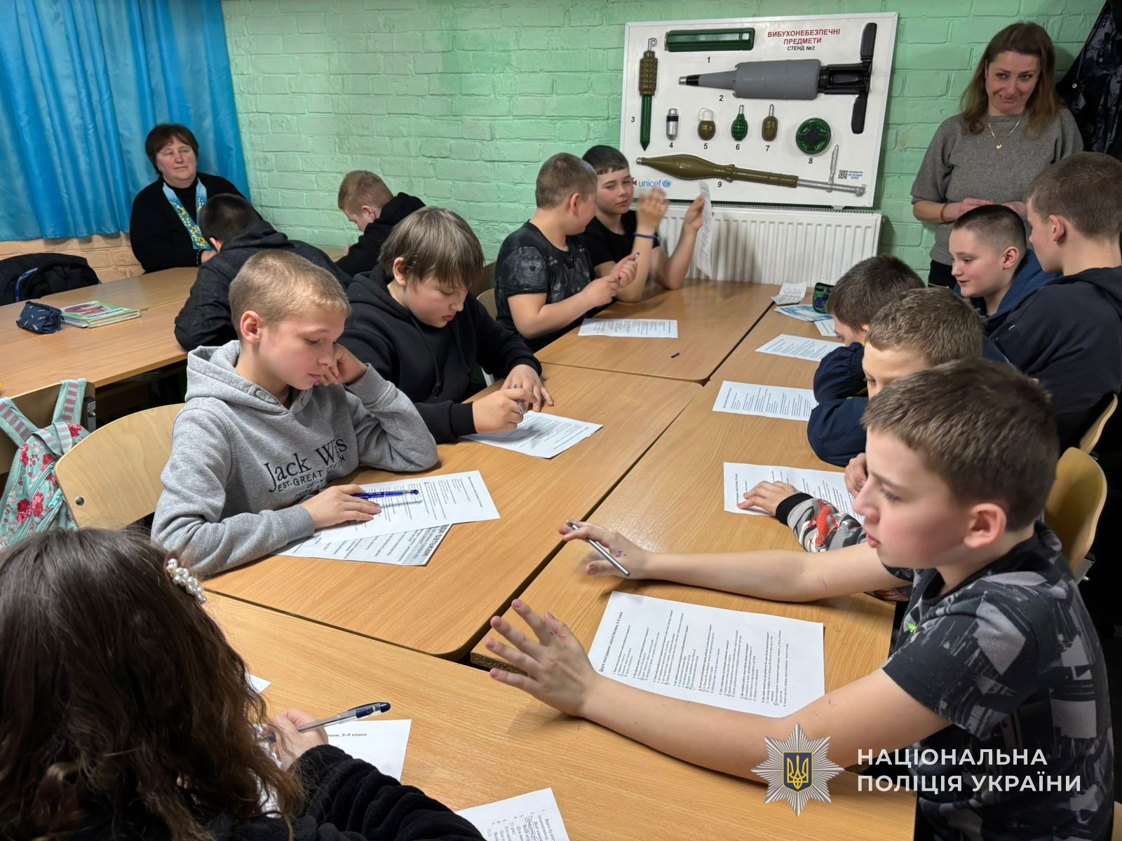 Поліцейські пояснили учням, як діяти у разі виявлення небезпечних знахідок, до кого звертатися по допомогу та чому категорично заборонено торкатися невідомих предметів. Також діти дізналися більше про правила дорожнього руху для пішоходів і велосипедистів.
