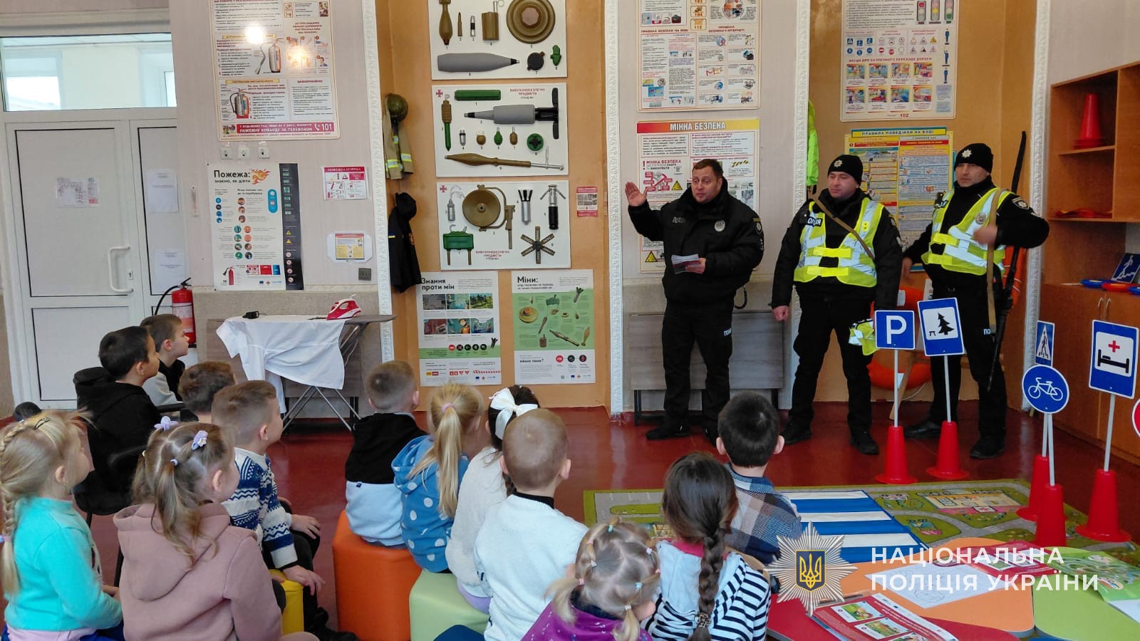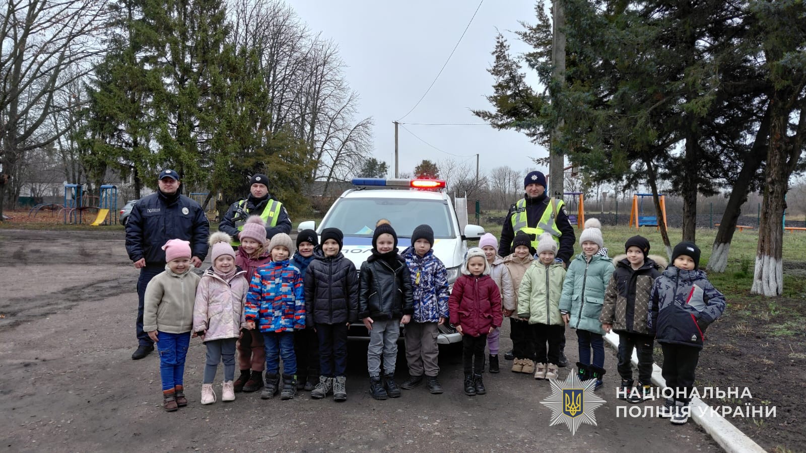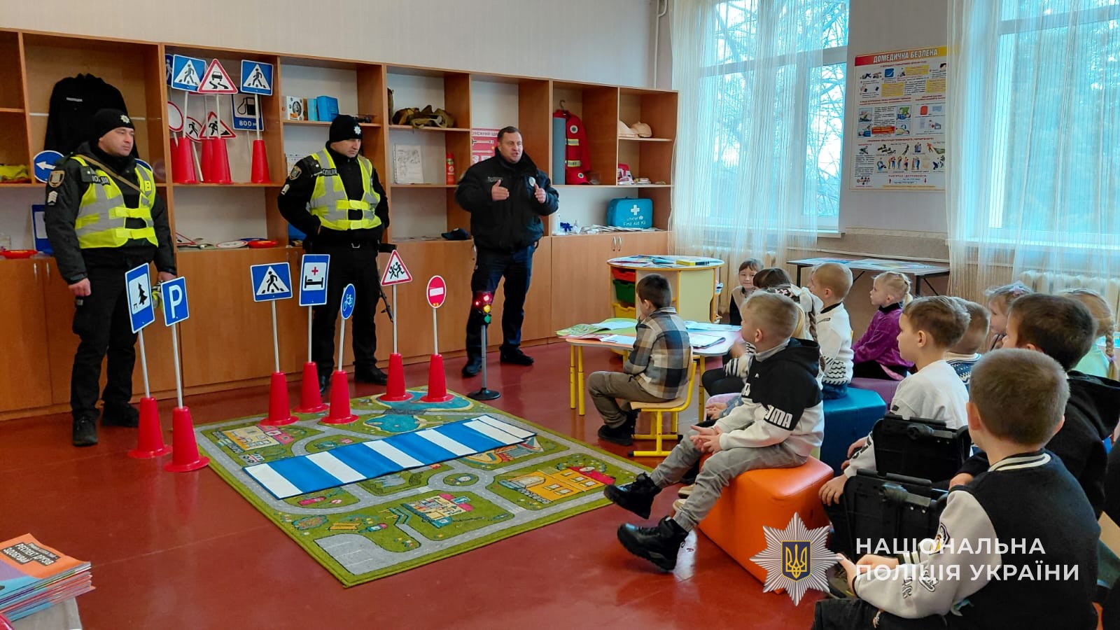 Інспектор ювенальної превенції спільно з патрульними, в доступній формі нагадали дітям основні правила дорожнього руху, розповіли про значення сигналів світлофора та пояснили, як правильно переходити дорогу.