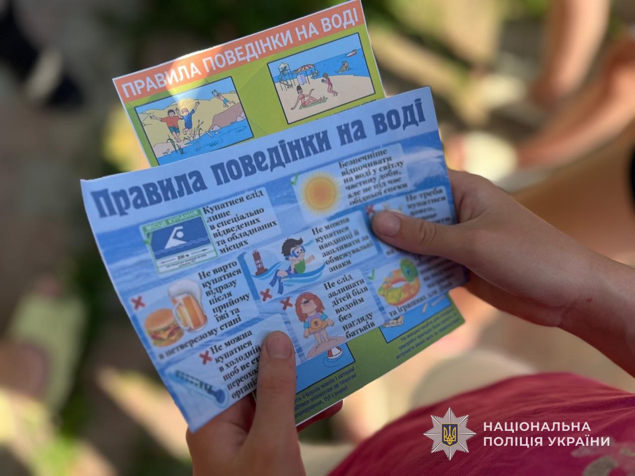 Під час зустрічей співробітники поліції нагадали основні правила безпеки на воді, наголосили на необхідності перебування поруч із дорослими під час купання, а також пояснили, чому не варто стрибати у воду в незнайомих місцях чи гратися на слизьких берегах.