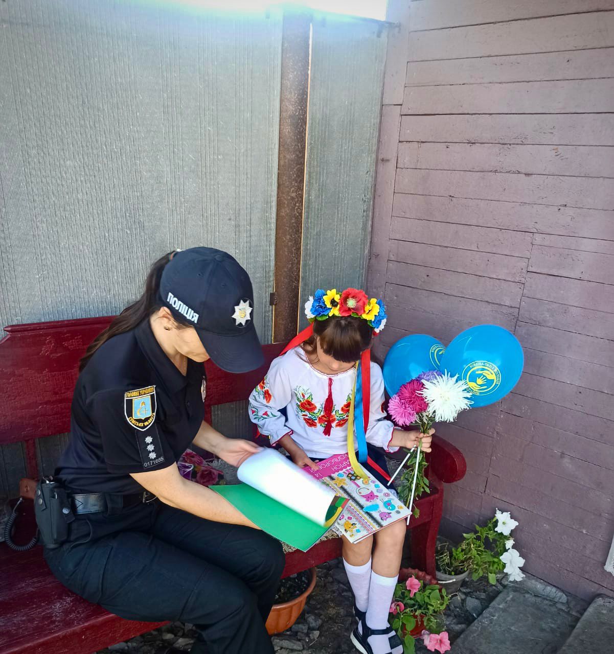Так, інспектор ювенальної превенції Юлія Московко завітала в гості до дівчинки, сімʼя якої проживає на території, що постійно потерпає від воєнної агресії росії. Поліцейська привітала школярку з початком нового навчального року та подарувала канцелярське приладдя. А на знак підтримки провела її до школи.