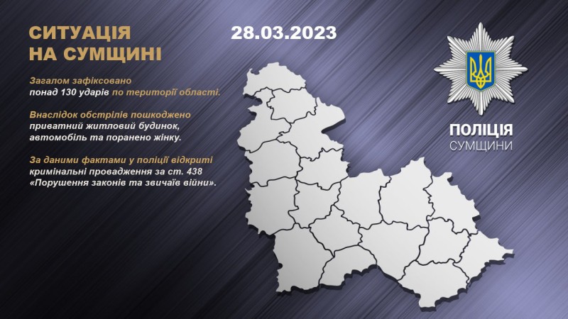 Протягом минулої доби війська рф знову обстрілювали прикордонні населені пункти області. Загалом нараховано понад 130 ударів.
