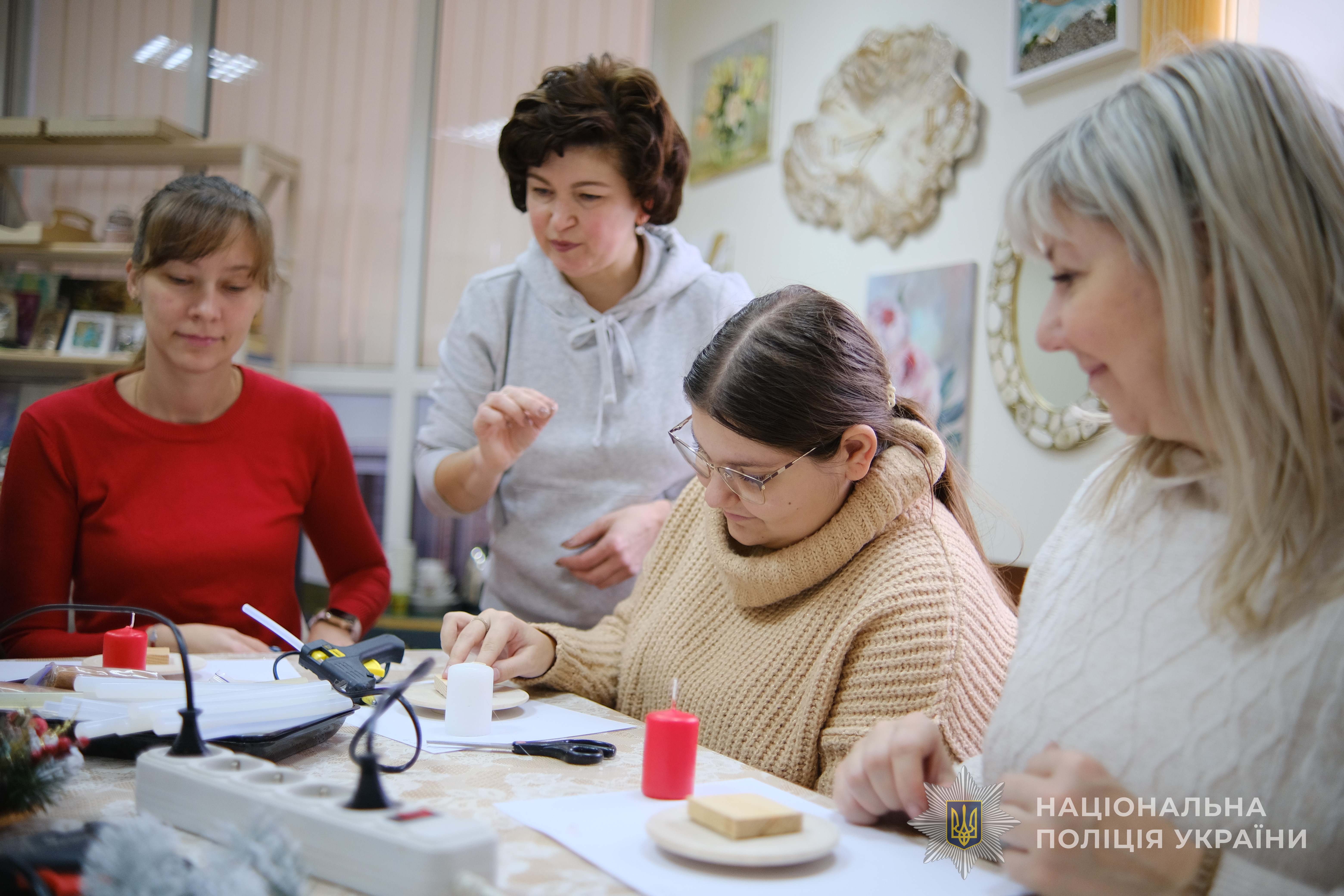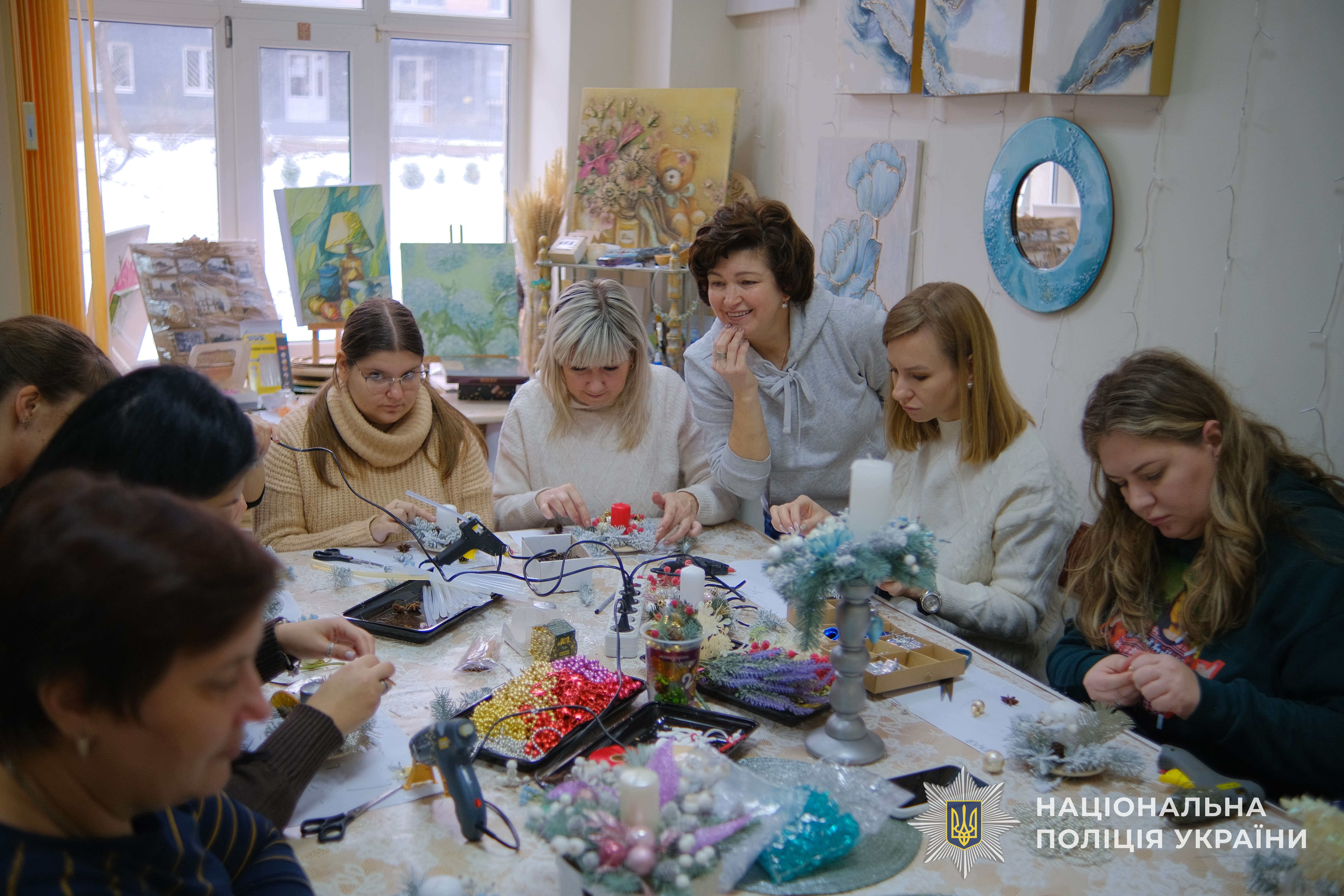 Окрім цього, для жінок було проведено цікавий майстер-клас із виготовлення новорічних композицій. Учасниці отримали змогу не лише створити святкові прикраси своїми руками, а й поринути у творчу атмосферу, яка допомогла трохи відволіктися від буденних труднощів.