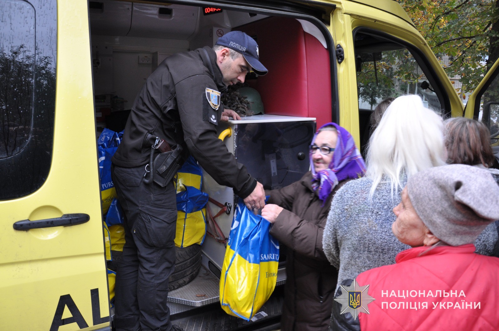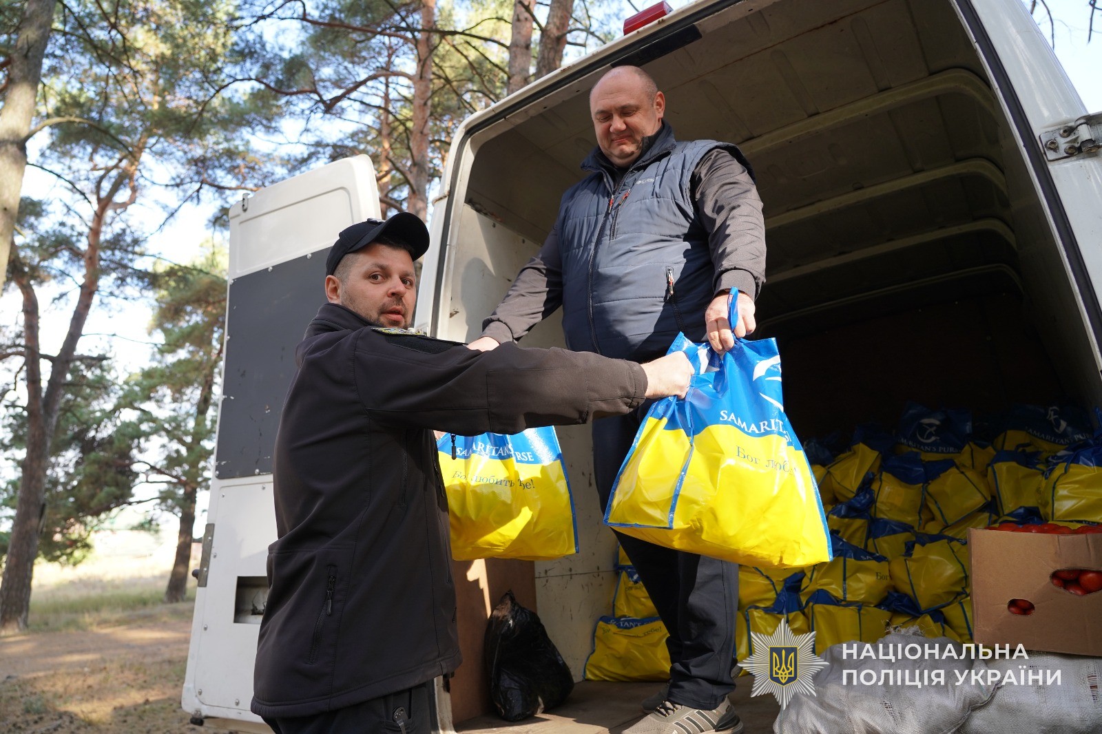 За ініціативи Департаменту головної інспекції та дотримання прав людини Національної поліції України, поліцейські області та волонтерське об’єднання «Свої» громадської організації «Золото нації», передали продуктові набори мешканцям прифронтових громад, які вимушені були покинути домівки внаслідок війни.