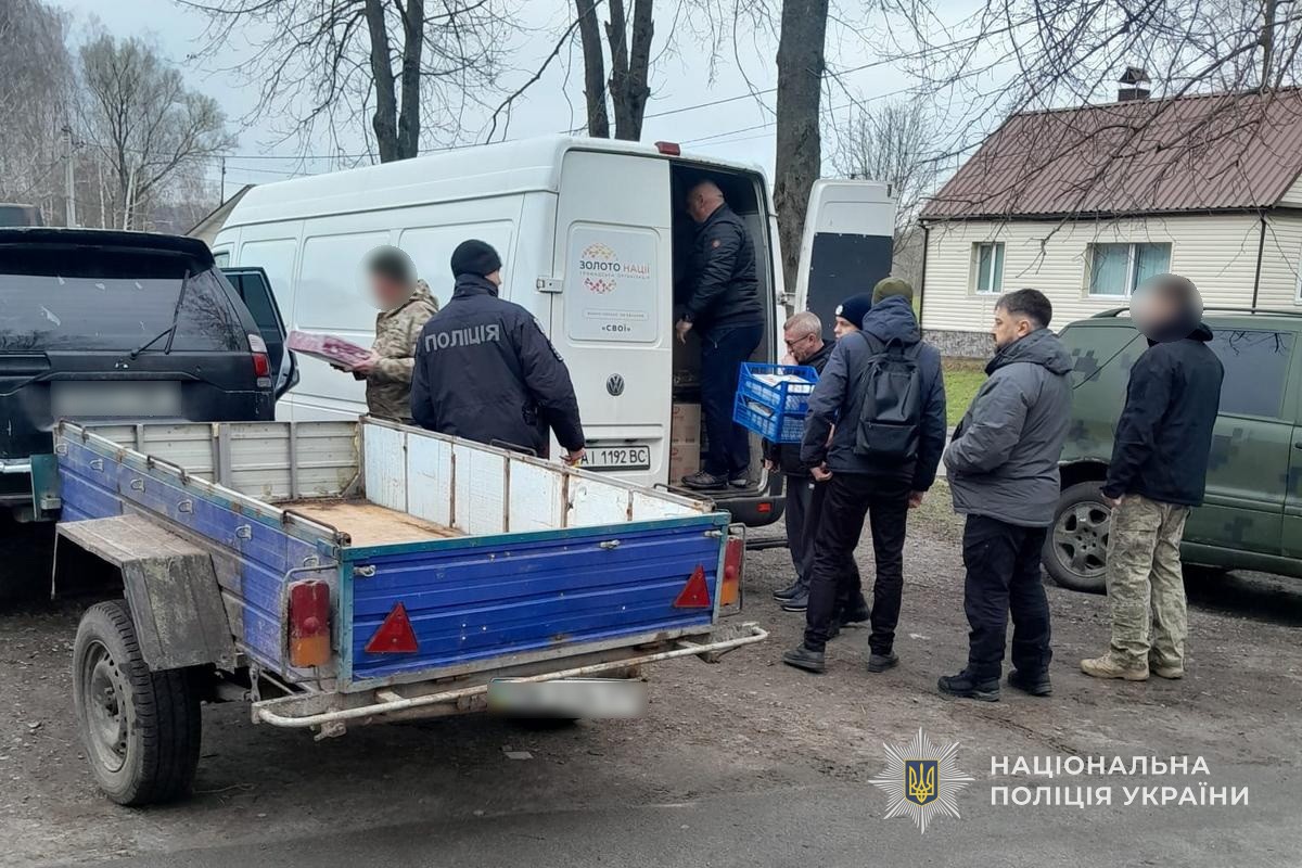 За ініціативи Департаменту головної інспекції та дотримання прав людини Національної поліції України, поліцейські області та волонтерське об’єднання «Свої» громадської організації «Золото нації», передали продуктові набори мешканцям прифронтових громад Глухівщини, а необхідне спорядження і медикаменти – захисникам України.