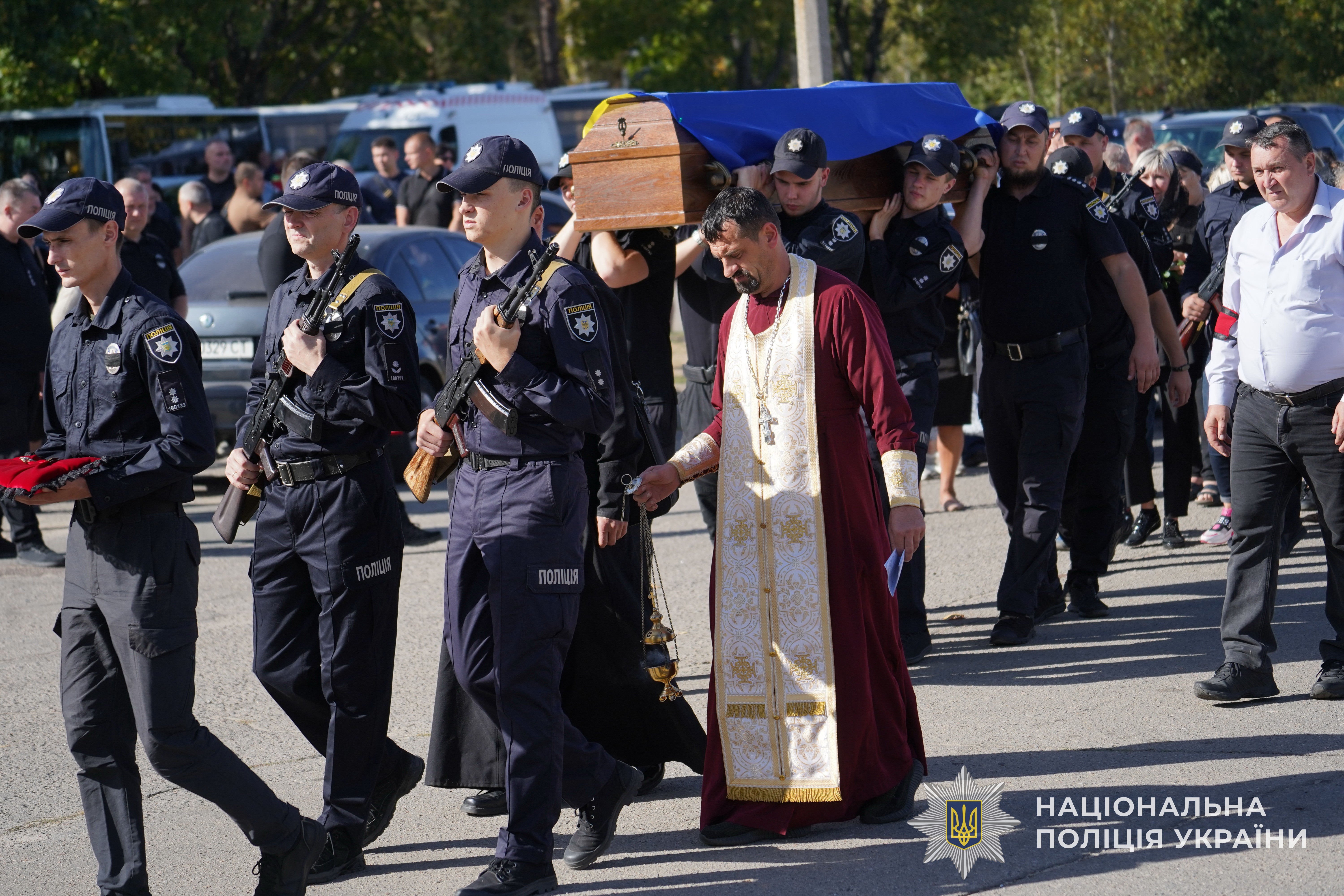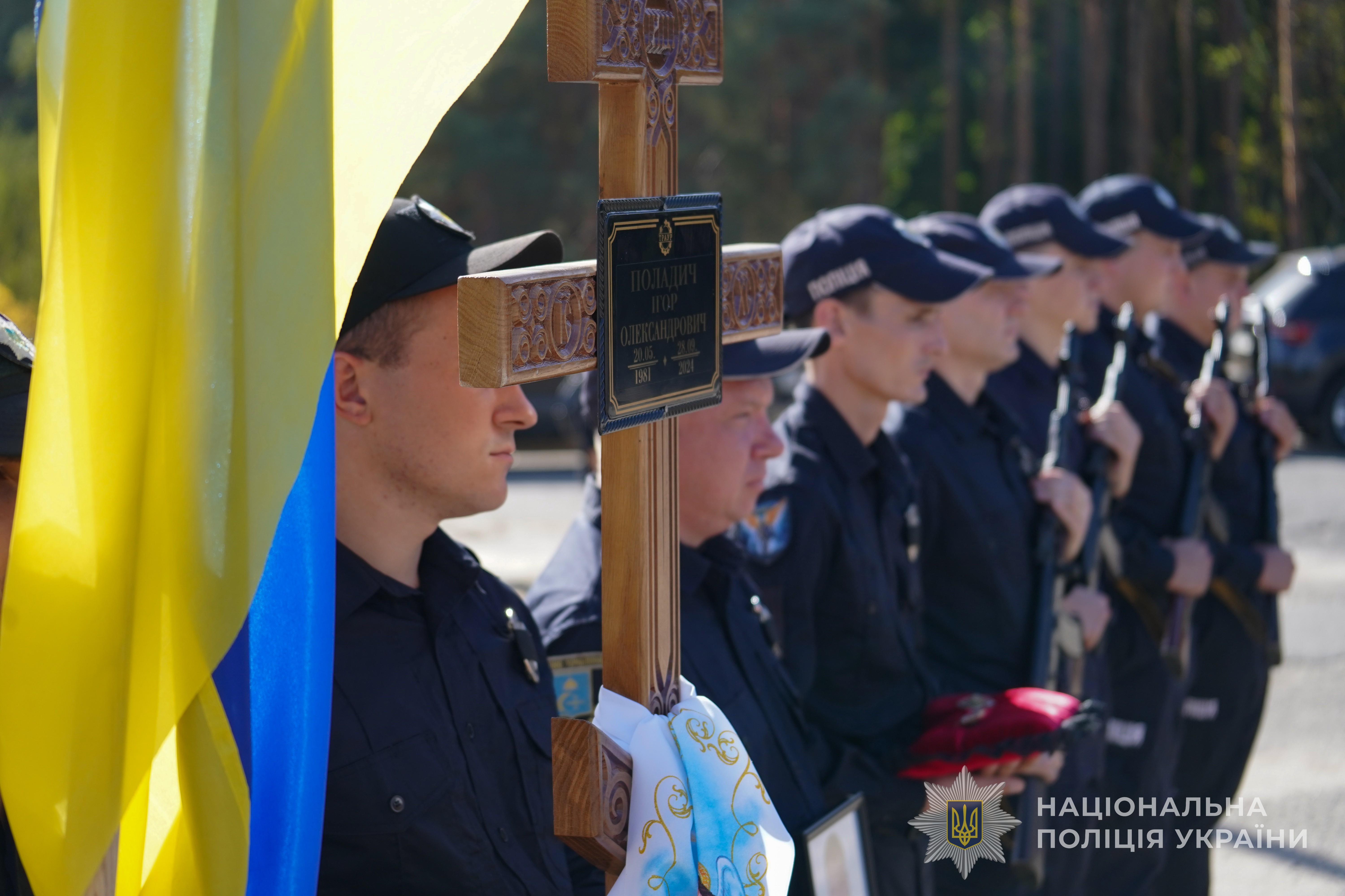 Сьогодні відбулося прощання із загиблим, внаслідок російського обстрілу, 43-річним начальником сектору кадрового забезпечення Сумського районного управління поліції Головного управління Національної поліції в Сумській області полковником поліції Ігорем Поладичем.