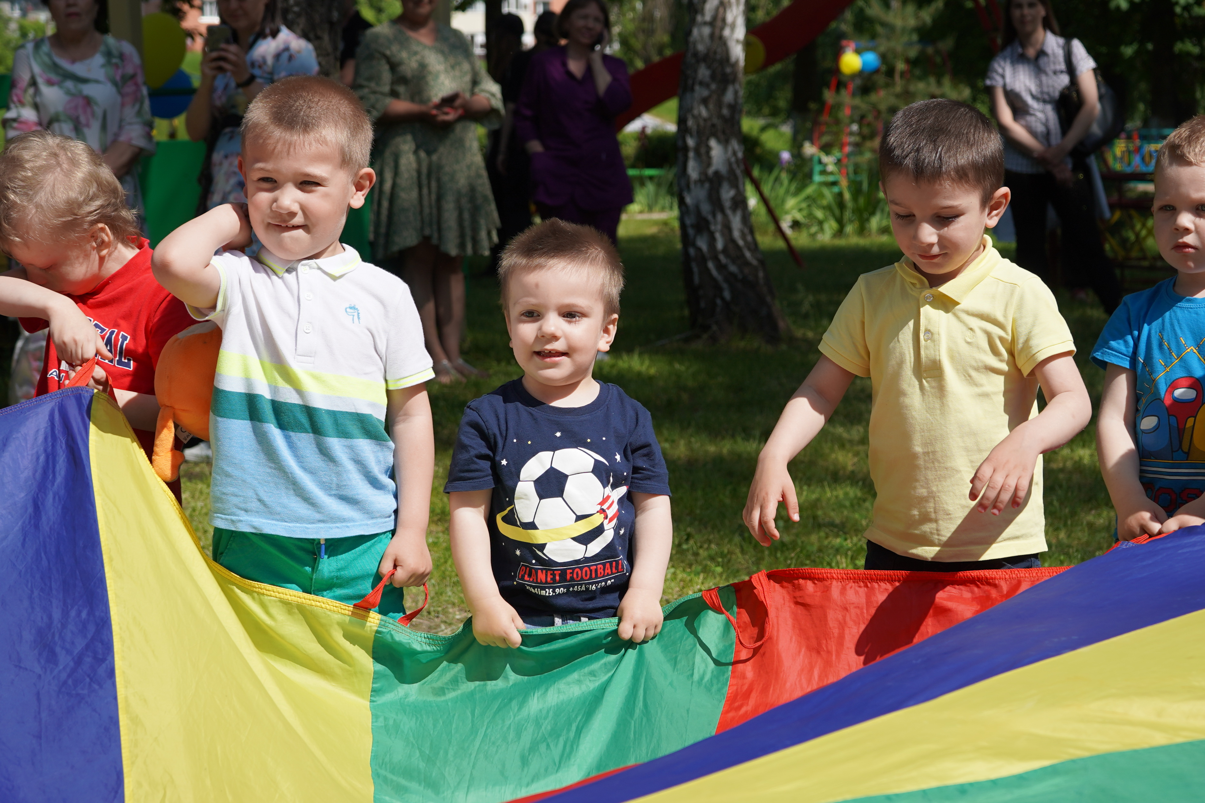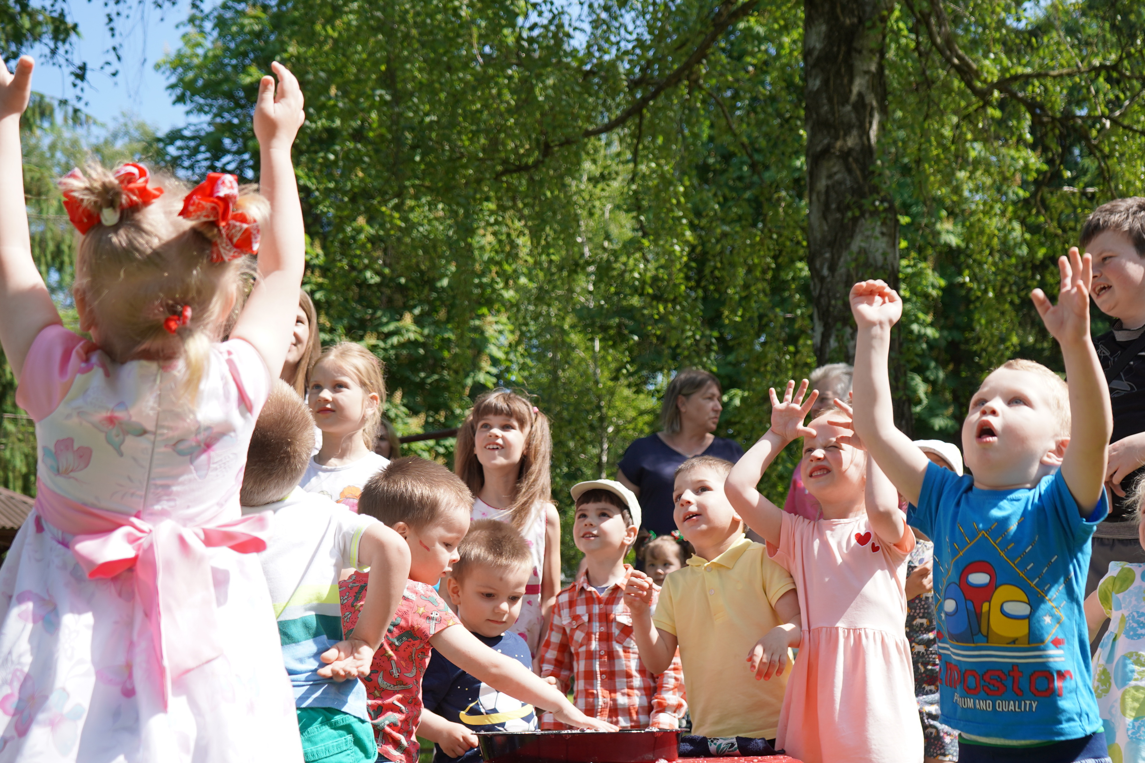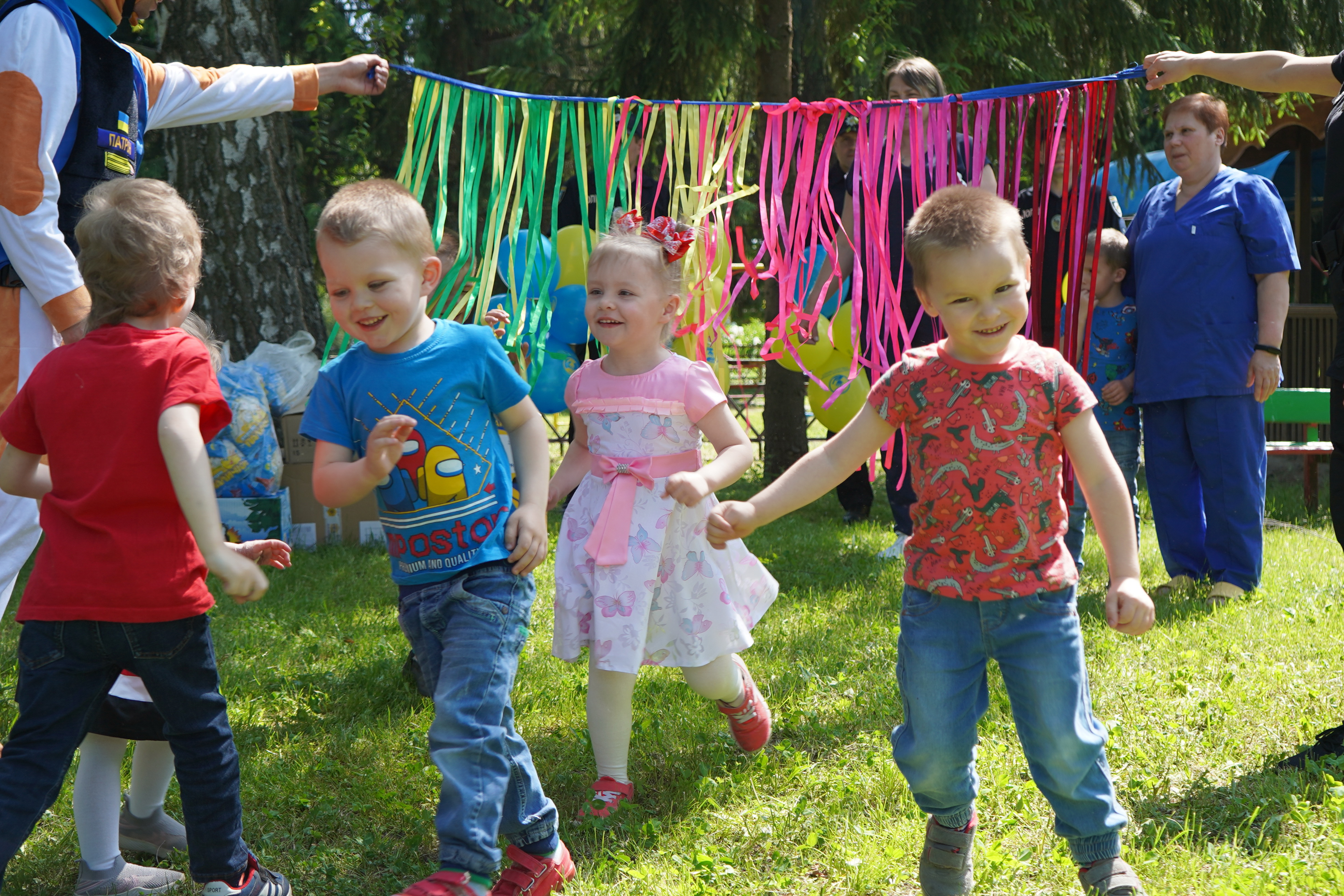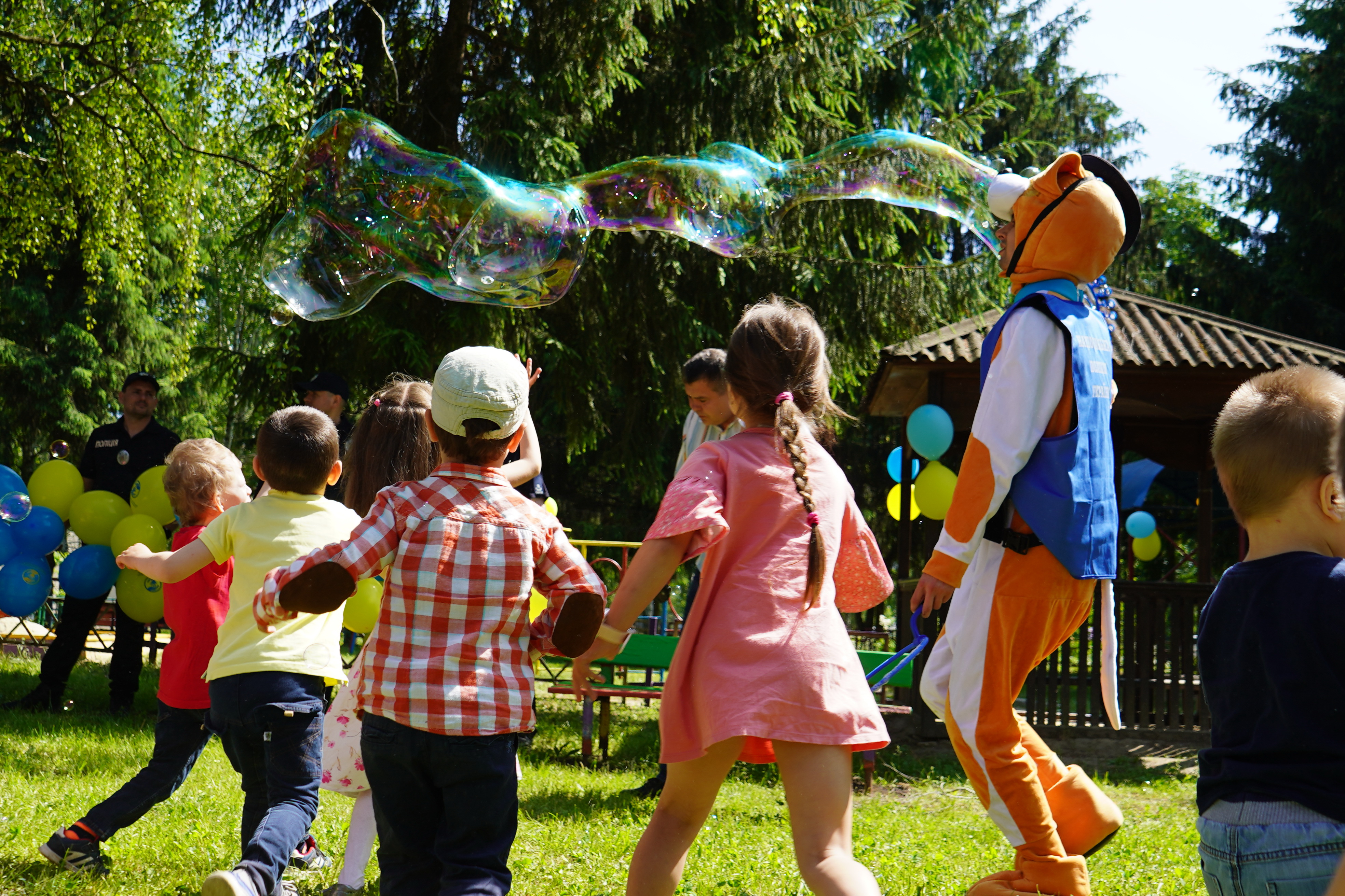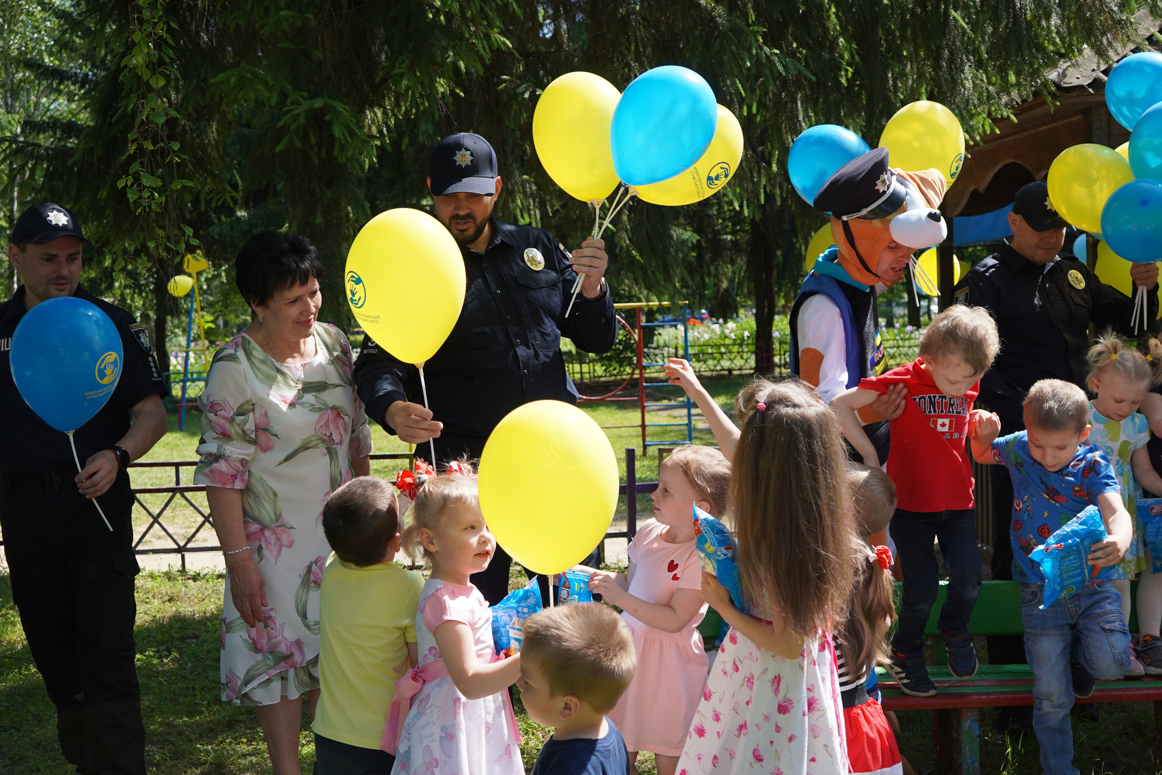 Цікава шоу-програма з псом Патроном не залишила байдужими маленьких сумчан. Активні ігри, танці та мильні бульбашки – саме те, що потрібно для радощів. Після весело проведеного часу, поліцейські вручили дітям подарунки, солодощі та повітряні кульки. Не обійшлось і без обіймів, адже кращий спосіб зробити дітлахів щасливими – це оточити їх любов’ю та зігріти теплом сердець.