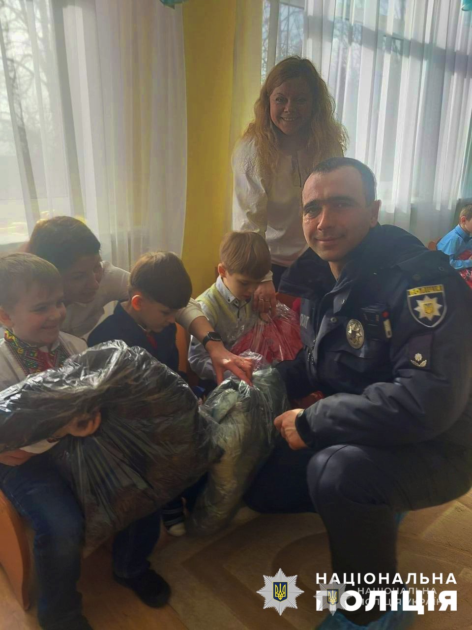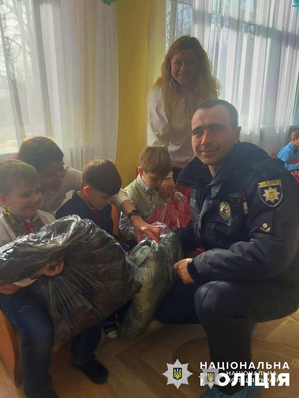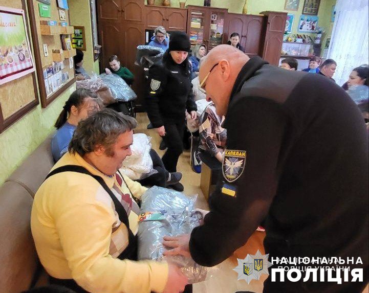Представник Департаменту головної інспекції та дотримання прав людини Євгеній Євтєєв, начальник відділу організації діяльності ІТТ і моніторингу дій із затриманими Володимир Білошапка та поліцейський офіцер громади Юрій Гамота разом із капеланами передали дітям, людям з інвалідністю та нужденним у медичних закладах весняні куртки. Допомогу надали завдяки співпраці з Благодійним фондом «Open Door Foundation».