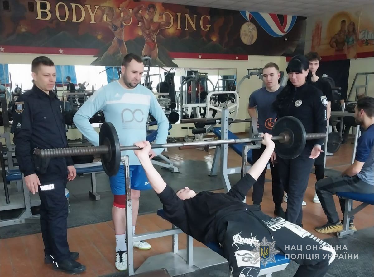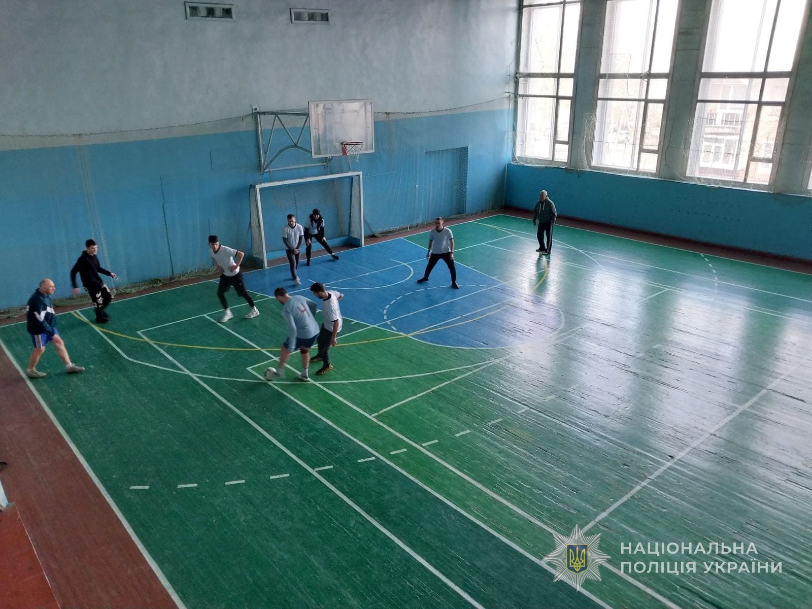 Працівники поліції разом учнями відвідали тренажерний та гімнастичний зал, а також зіграли товариський матч з футболу з ювенальними поліцейськими та представниками СОО ФСТ "Динамо" України.