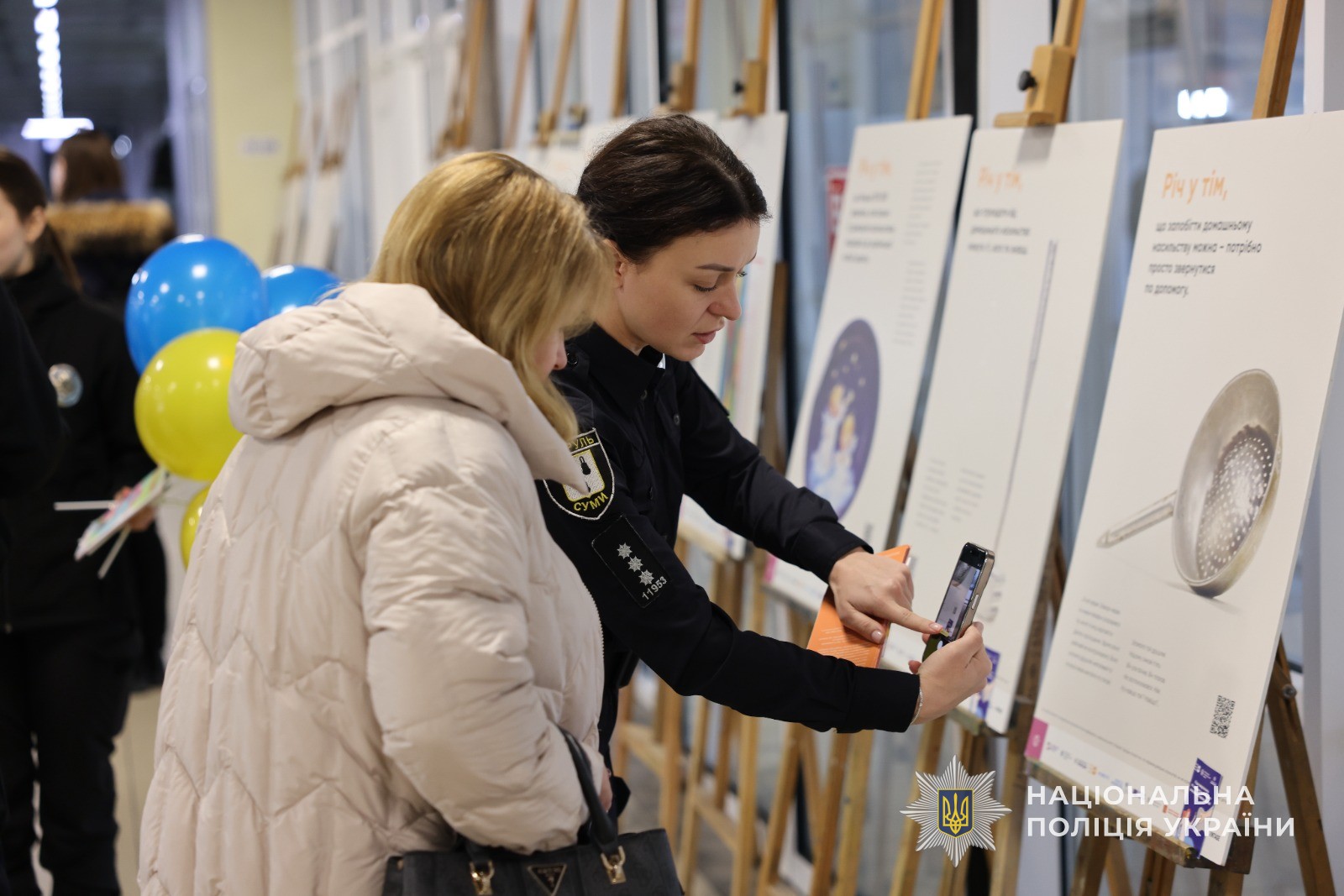 Сьогодні представники Департаменту головної інспекції та дотримання прав людини НПУ, співробітники ювенальної превенції ГУНП в Сумській області спільно з патрульними поліцейськими, капеланами та працівниками соціальних служб області презентували цю виставку для мешканців та гостей міста Суми, розповідаючи про дану проблематику та роздаючи спеціальні пам’ятні буклети, листівки чи повітряні кульки.