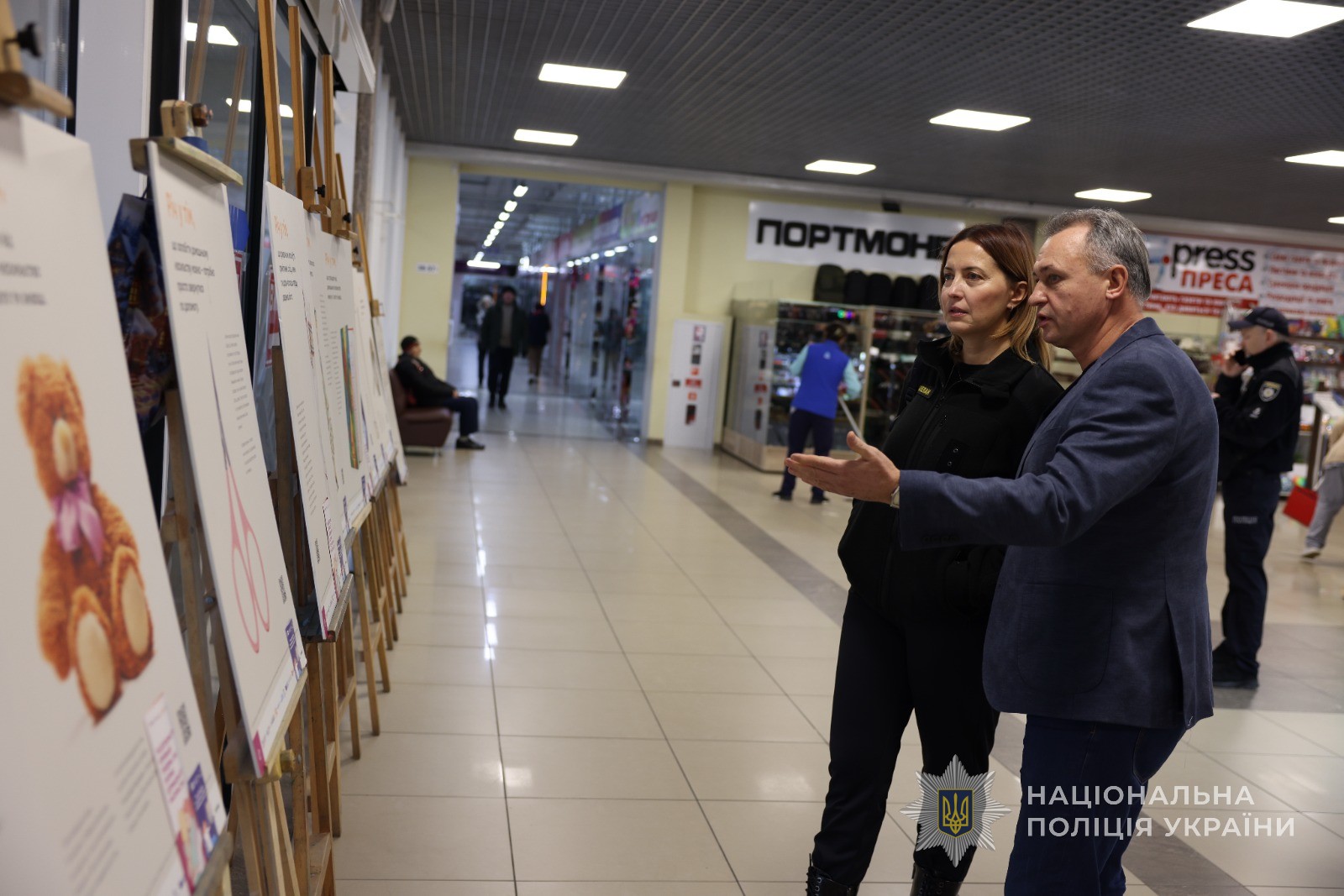 Ця виставка триватиме з 25 листопада по 10 грудня у торгово-розважальному центрі «Євробазар». Кожен, хто став жертвою або свідком вчинення домашнього насильства, повинен не замовчувати даний факт та звертатися до поліції на цілодобову лінію 102.