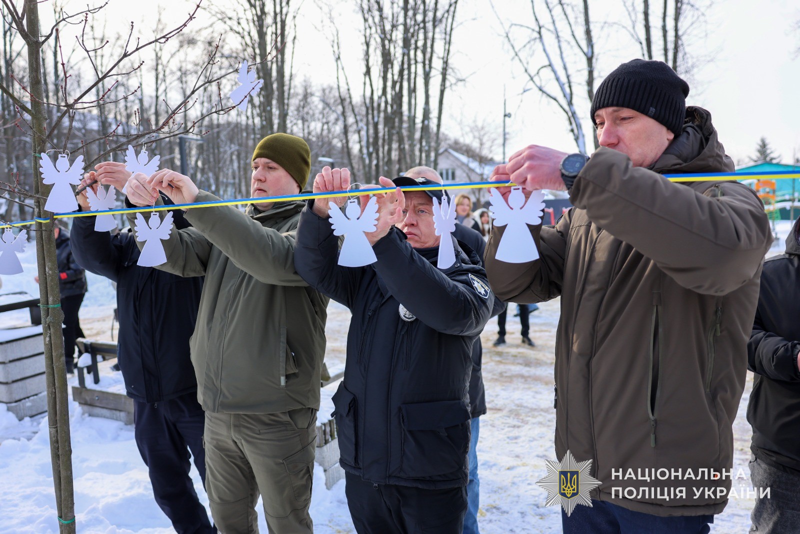 Особливо зворушливим елементом заходу стали паперові янголи — символи чистоти душ та світлої пам’яті полеглих. Їх розмістили біля пам’ятного знаку як нагадування про кожне втрачене життя та про відповідальність перед тими, хто пожертвував собою заради майбутнього держави.