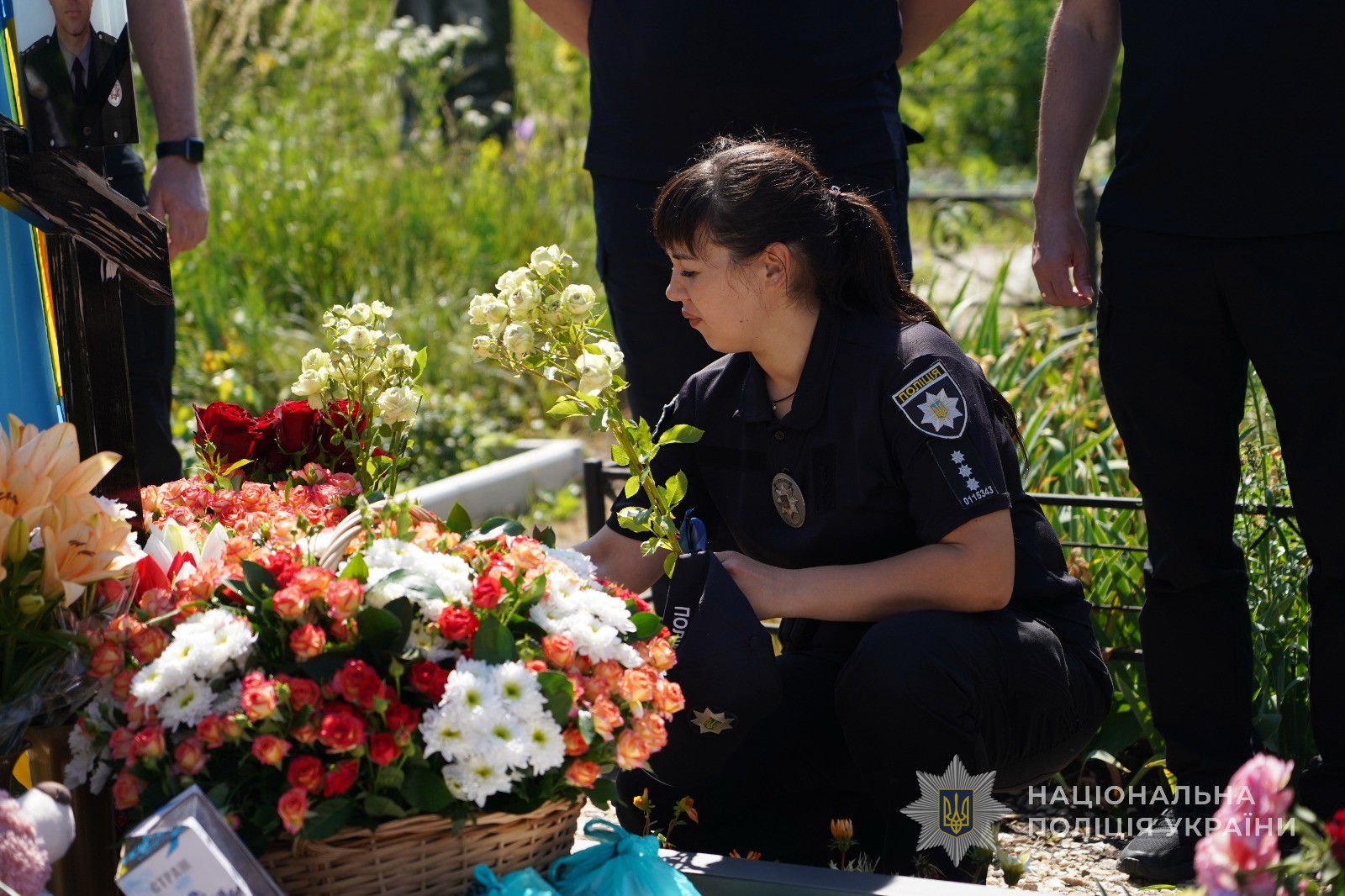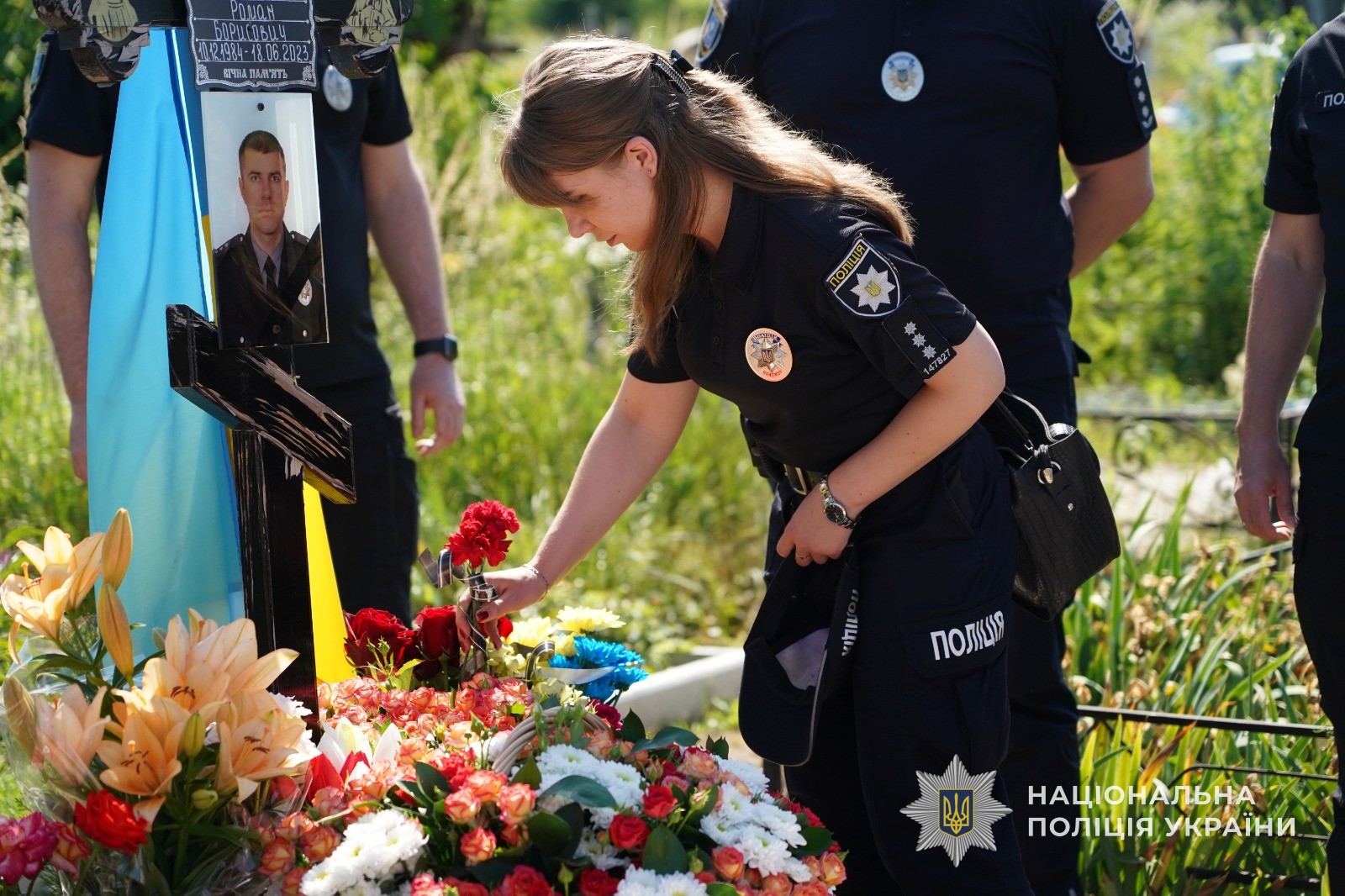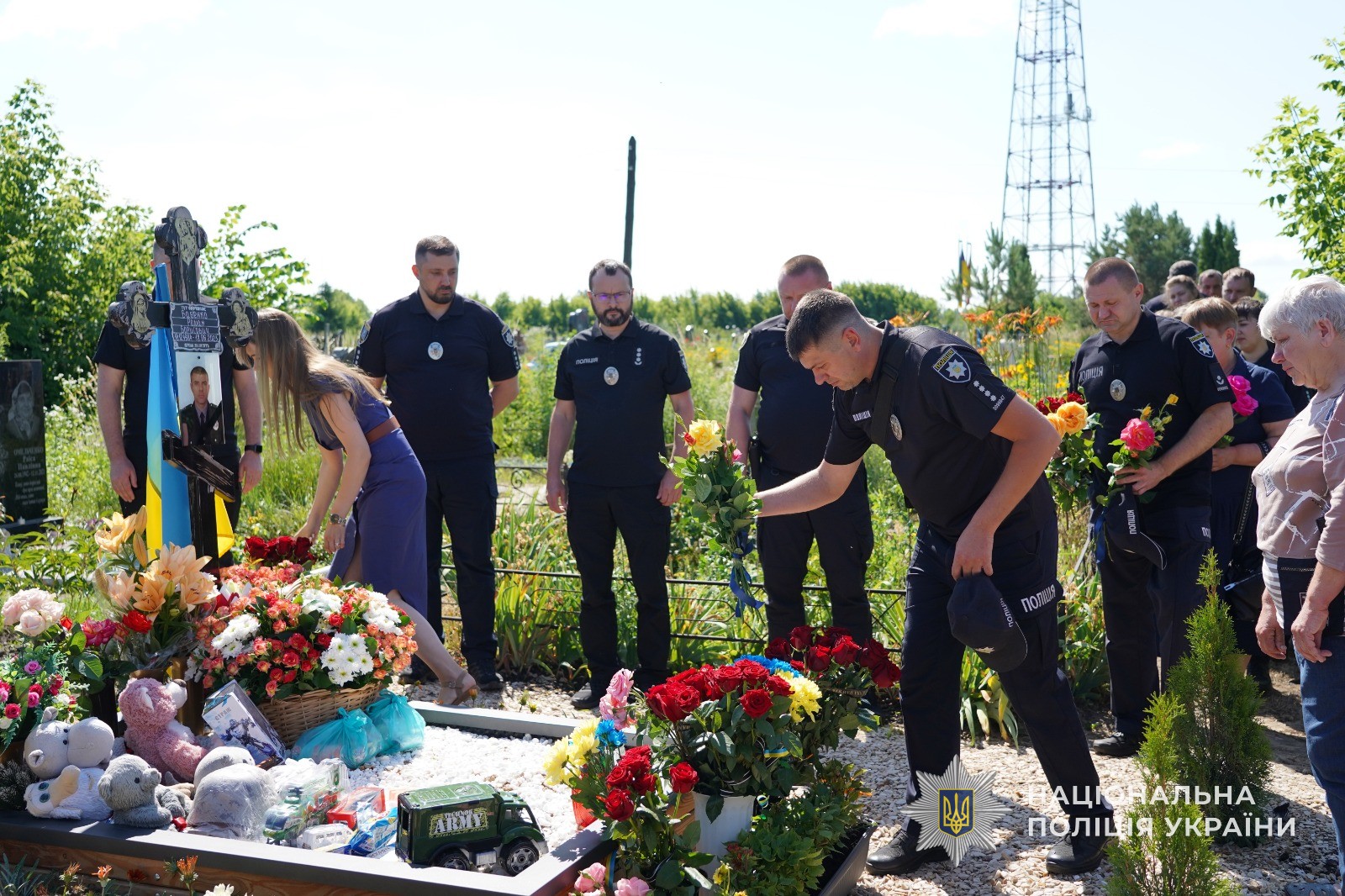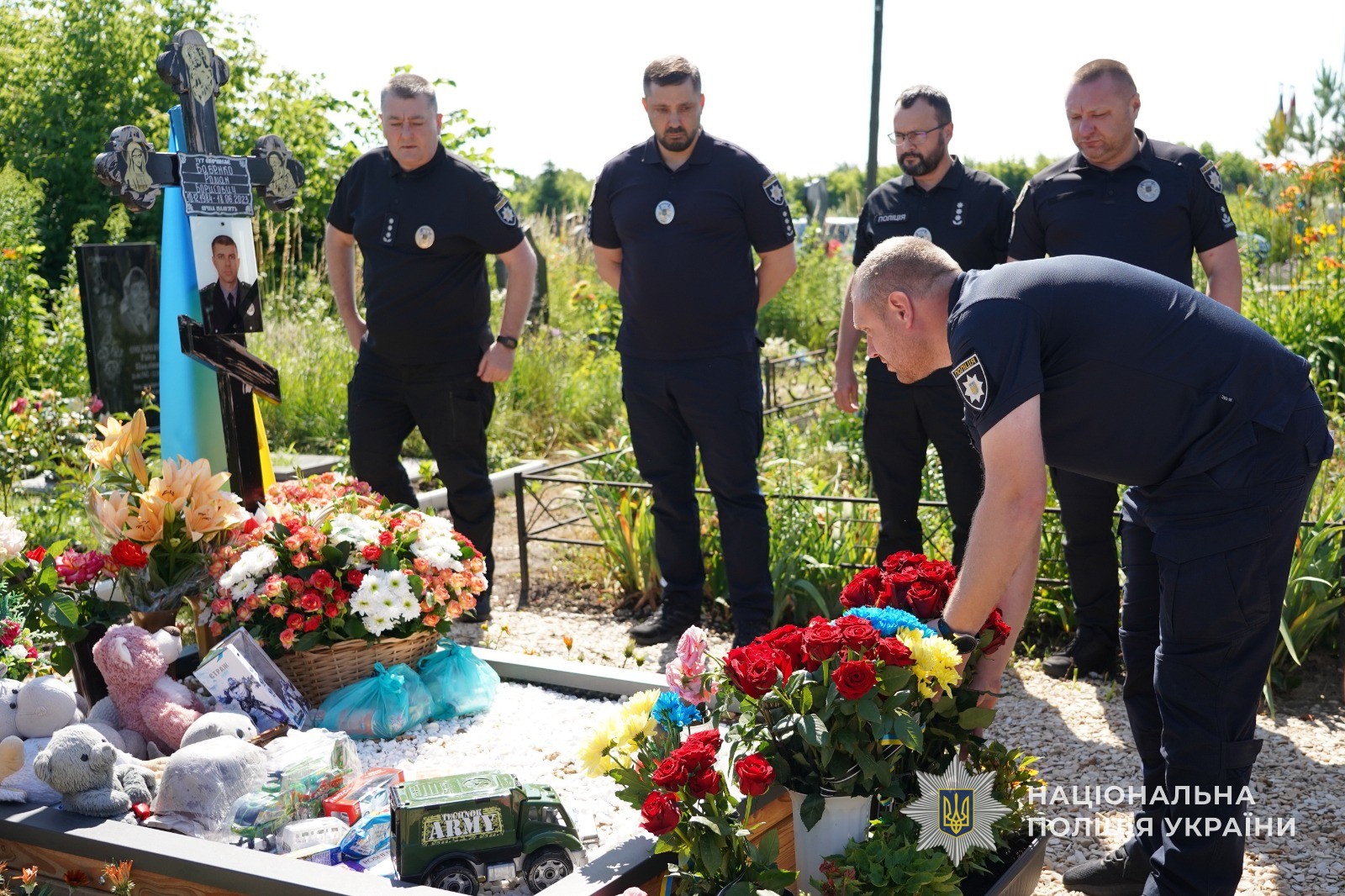 Поліцейські Сумщини вшанували пам’ять вбитого росіянами поліцейського Романа Бабенка та його чотирьохрічного сина Дмитра