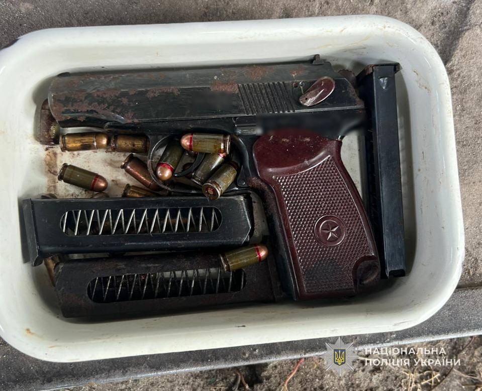 Під час проведення санкціонованого обшуку вдома у 43-річного чоловіка було виявлено 12 запалів УЗРГМ, 5 запалів УЗД, ВОГ 25 ЗГМ, електродетонатор, пістолет ПМ, 3 магазини до нього, два пістолета Perfecta cal 8mm та два магазини до нього, револьвер у розібраному стані, кришку ствольної коробки АК, 4 гранати ф1, 4 гранати РГО, гранату РГН, 7 гранат РГД5, набої 5,45 в кількості 1270 штук набої 7,62 в кількості 156 штук, набої 9мм в кількості 59 штук, 11 набої 7,62х25, 50 набоїв 5,6 мм, 34 набої без маркування, 4 димові гранати та 2 магазина до АК.