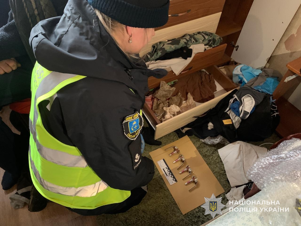 Під час обшуків правоохоронці вилучили зброю, боєприпаси та наркотичні речовини. Зокрема, 4 бойові гранати із запалами, пістолет Макарова та 15 набоїв до нього, автомат АК-74 та 116 набоїв до нього, канабіс та PVP-сіль. Крім того, вилучено речові докази, які підтверджують причетність підозрюваного до нападу, серед яких одяг, взуття та викрадені речі потерпілого.